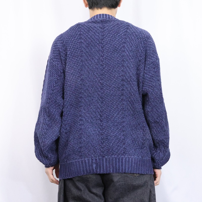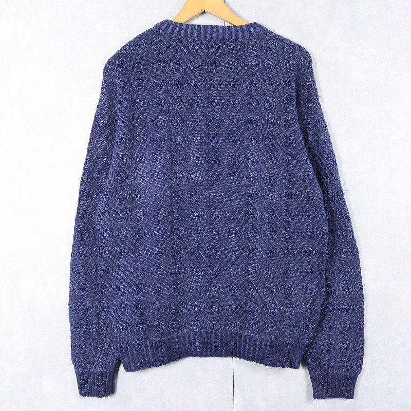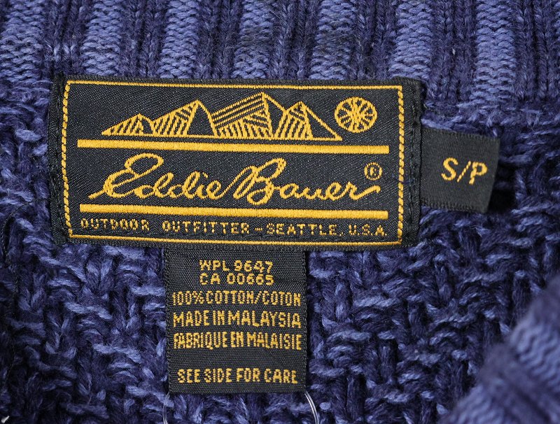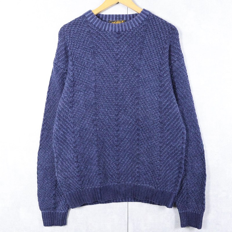 80〜90's Eddie Bauer ヘリンボーン織り コットンニットセーター NAVY S [163811]