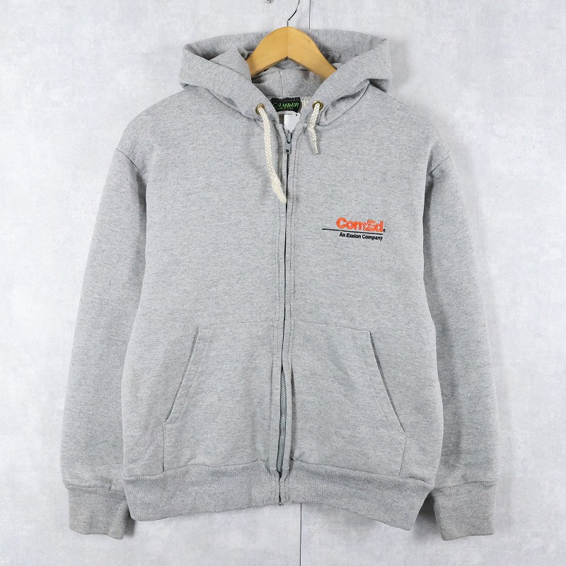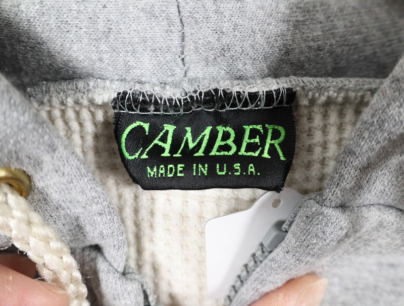 90's CAMBER USA製 裏サーマル 刺繍入りスウェットジップパーカー S [163837]