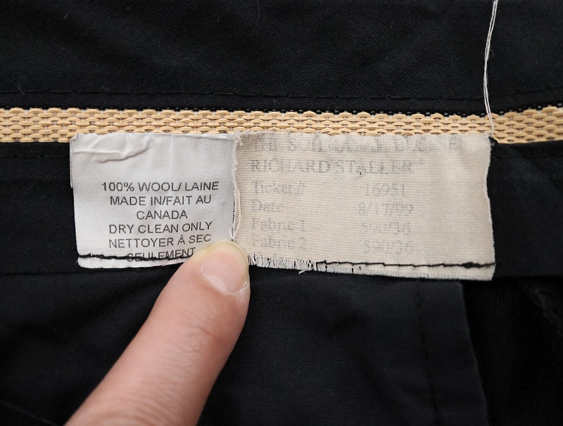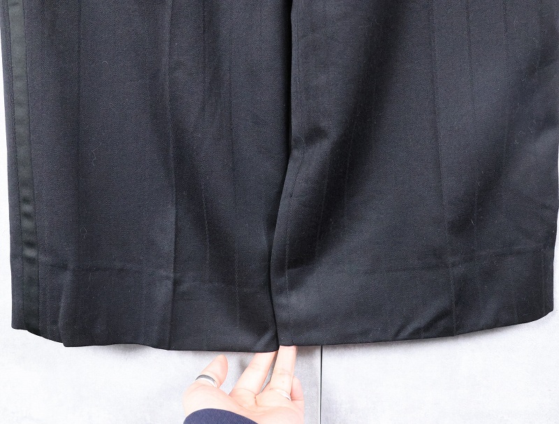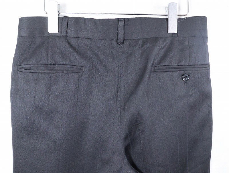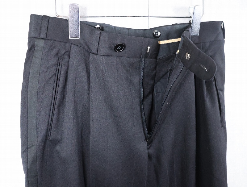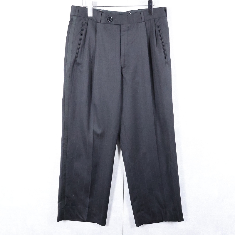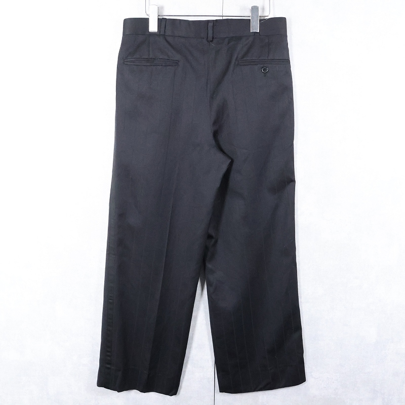 90's CANADA製 ストライプ柄 サイドライン 2タック ウールスラックス BLACK W32 [163842]