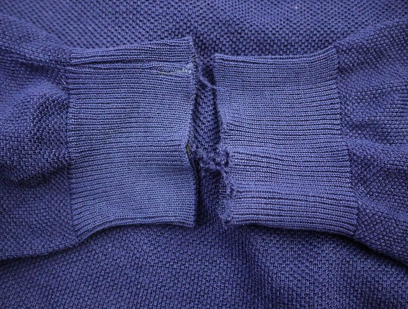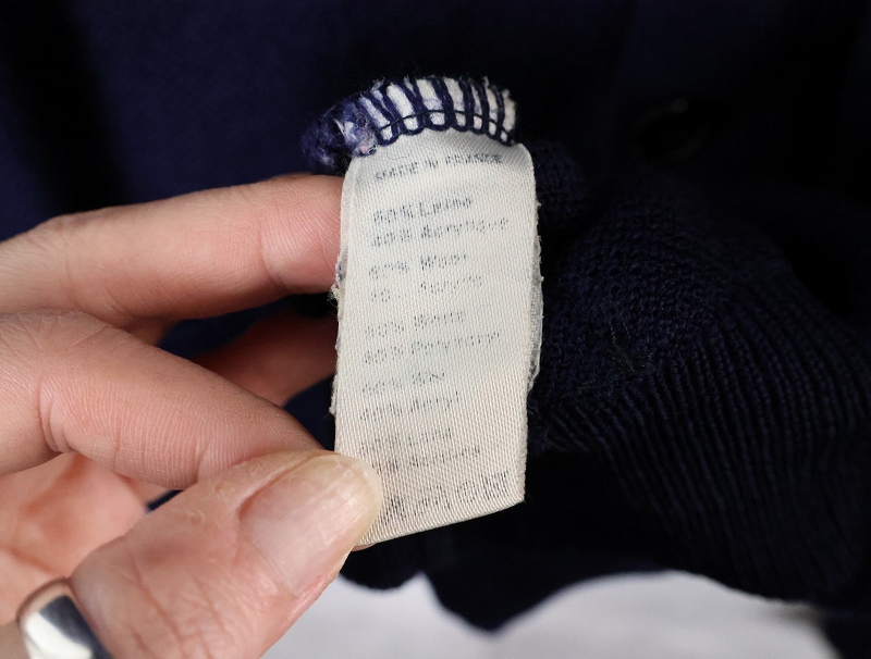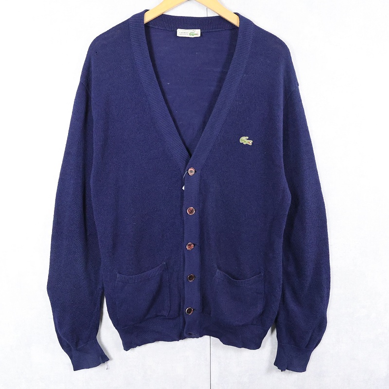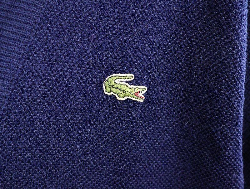 70〜80's CHEMISE LACOSTE FRANCE製 ロゴ刺繍 ウールニットカーディガン NAVY [163859]