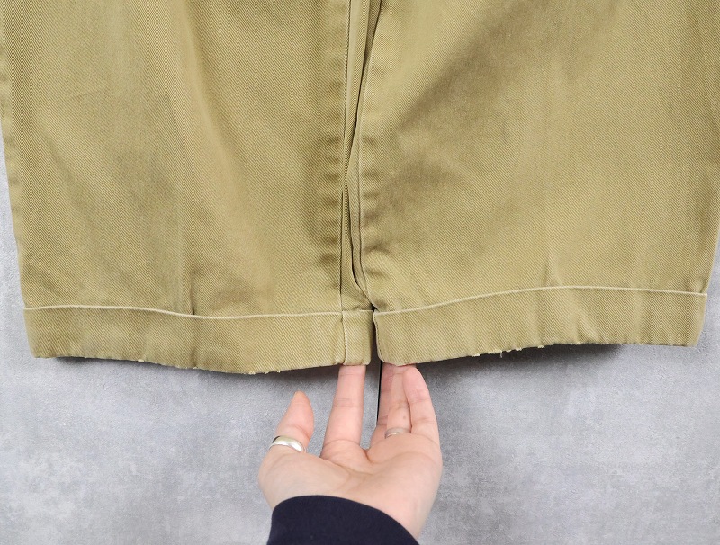 - 擦れ、薄汚れ、裾上げ跡があり、古着らしい雰囲気の一点です。