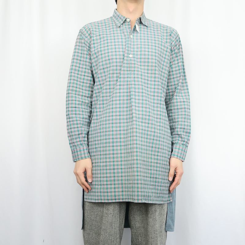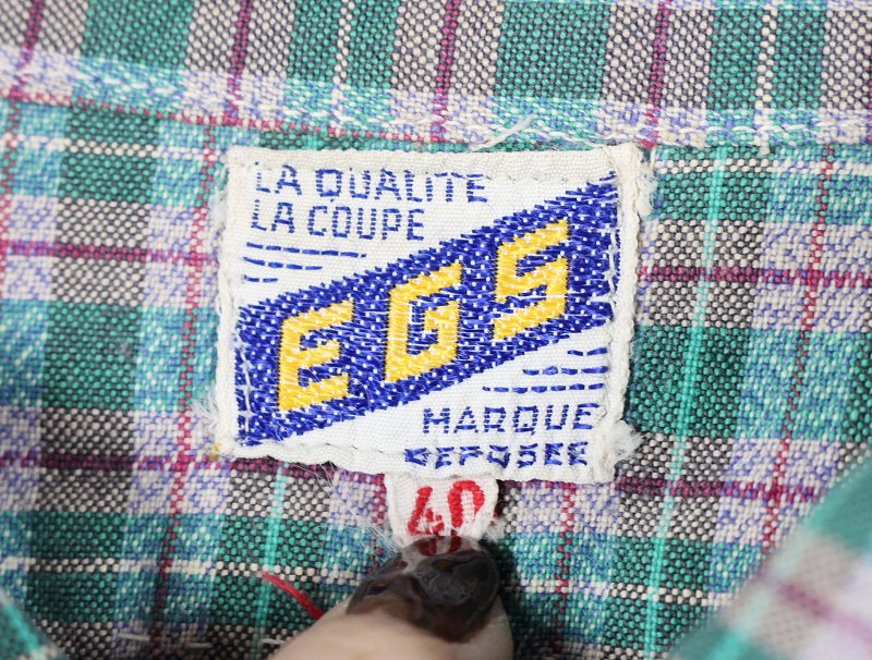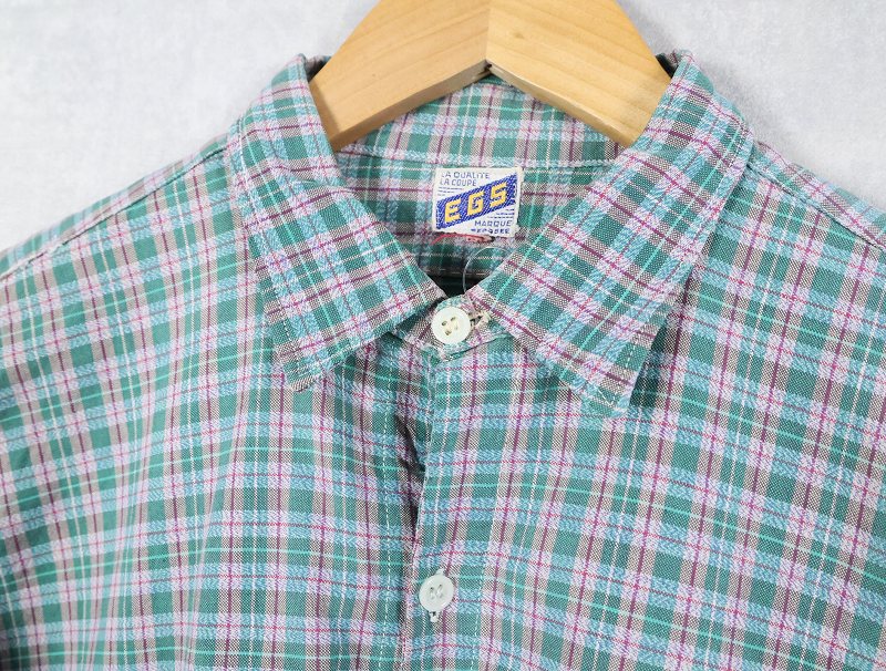 60's〜 EGS チェック柄 カスタム コットングランパシャツ SIZE40 [163873]