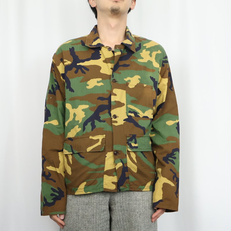 80's ウッドランドカモ柄 コットンハンティングジャケット L [163875]