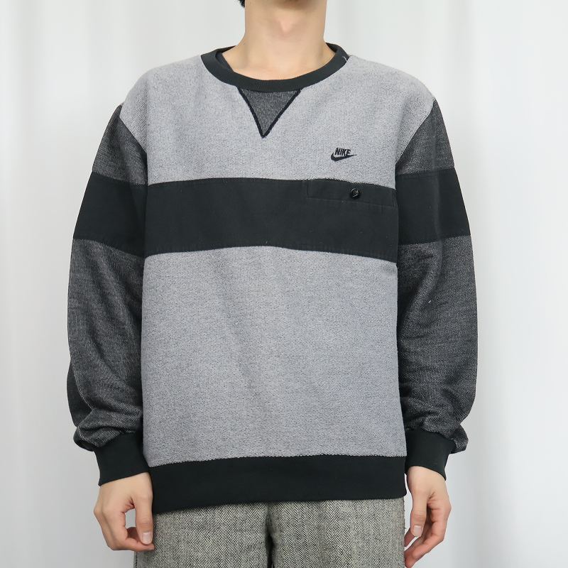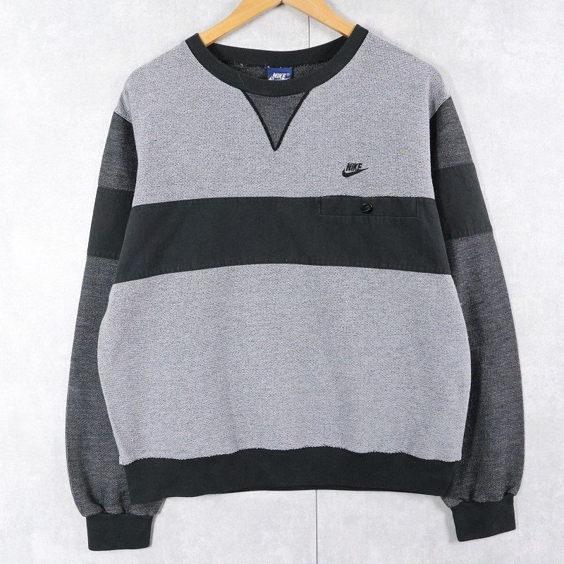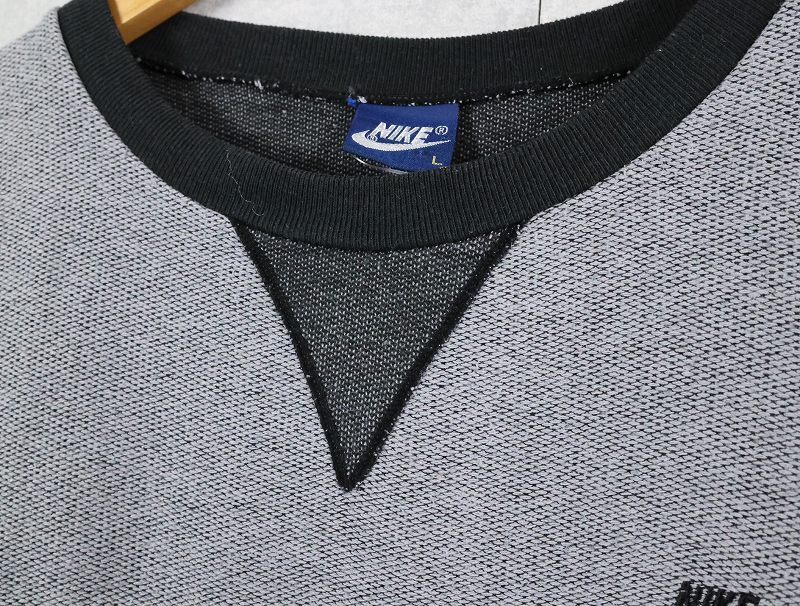 80's NIKE 紺タグ ロゴ刺繍 前V 鹿の子スウェット L [163877]