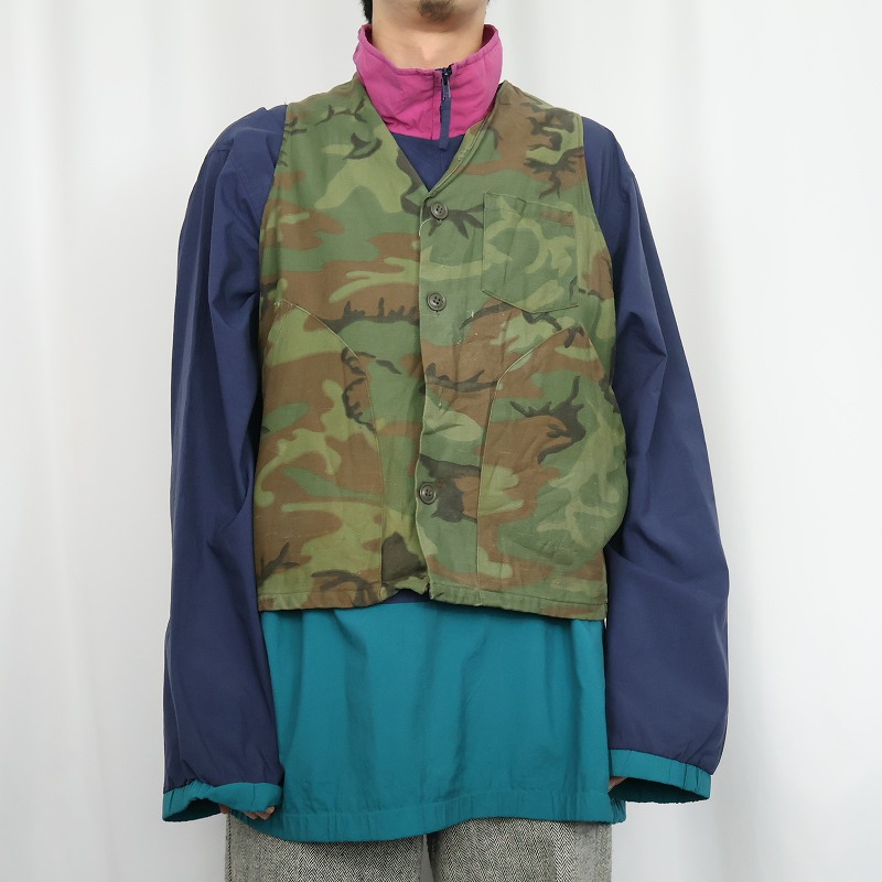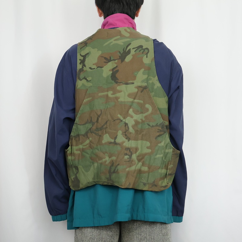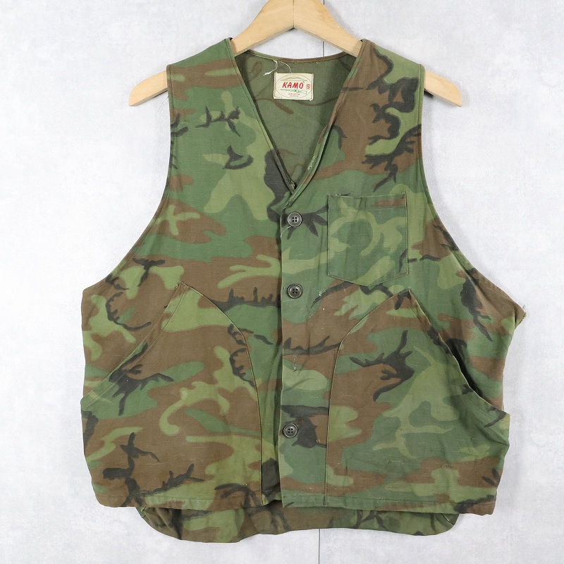 60's KAMO USA製 ウッドランドカモ柄 コットンハンティングベスト S [163892]