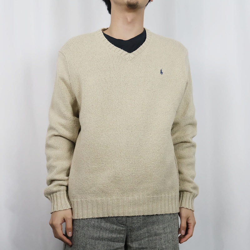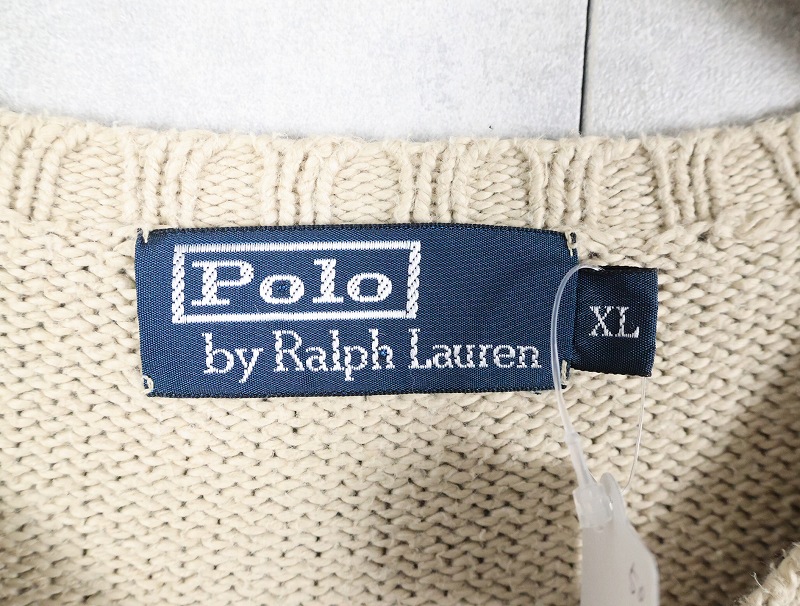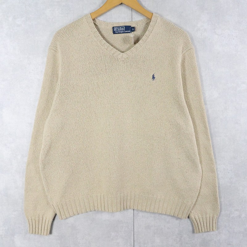 POLO Ralph Lauren ロゴ刺繍 Vネック コットンニットセーター XL [163909]