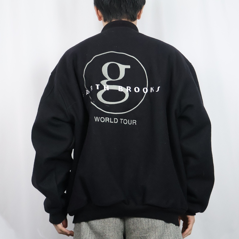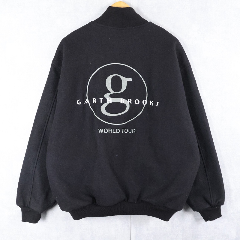 80〜90's Garth Brooks USA製 ミュージシャン メルトンウールスタジャン BLACK XXL [163916]