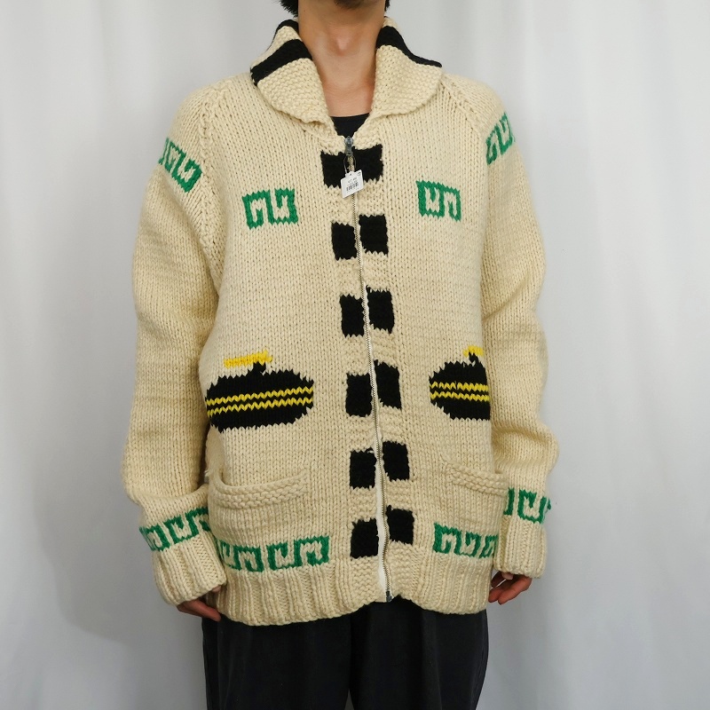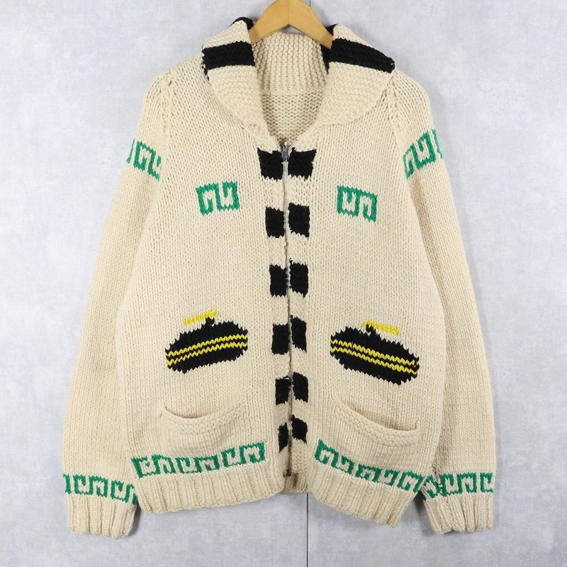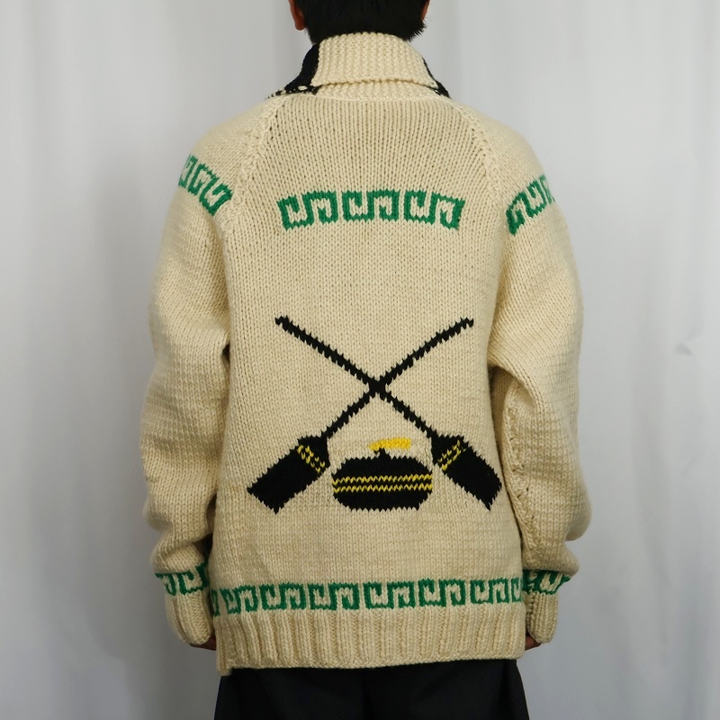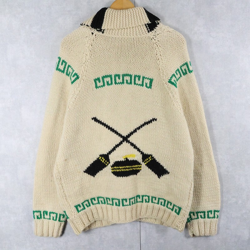 60〜70's カーリング柄 ショールカラー ウールカウチンニットジャケット [163931]