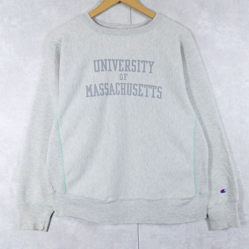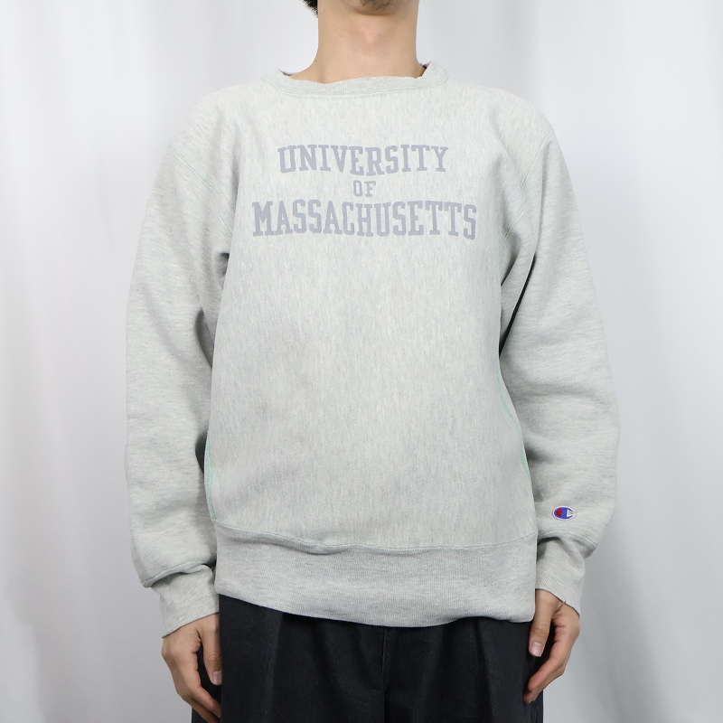 80's Champion REVERSE WEAVE トリコタグ USA製 "UNIVERSITY OF MASSACHUSETTS" プリントスウェット L [163956]