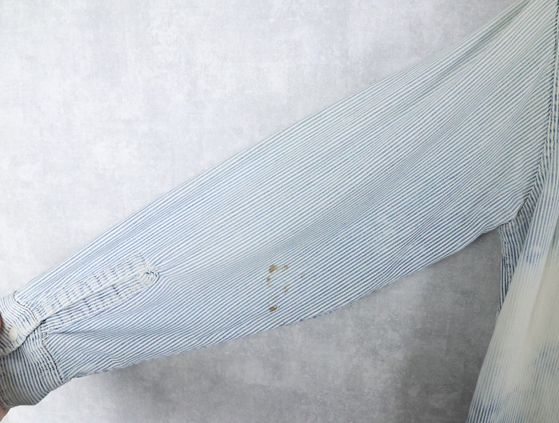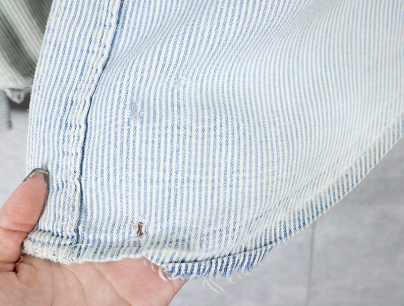 - 色落ち、ブリーチ跡、シミ、穴や破れ等のダメージがありますが、とても雰囲気の良い一点です。
