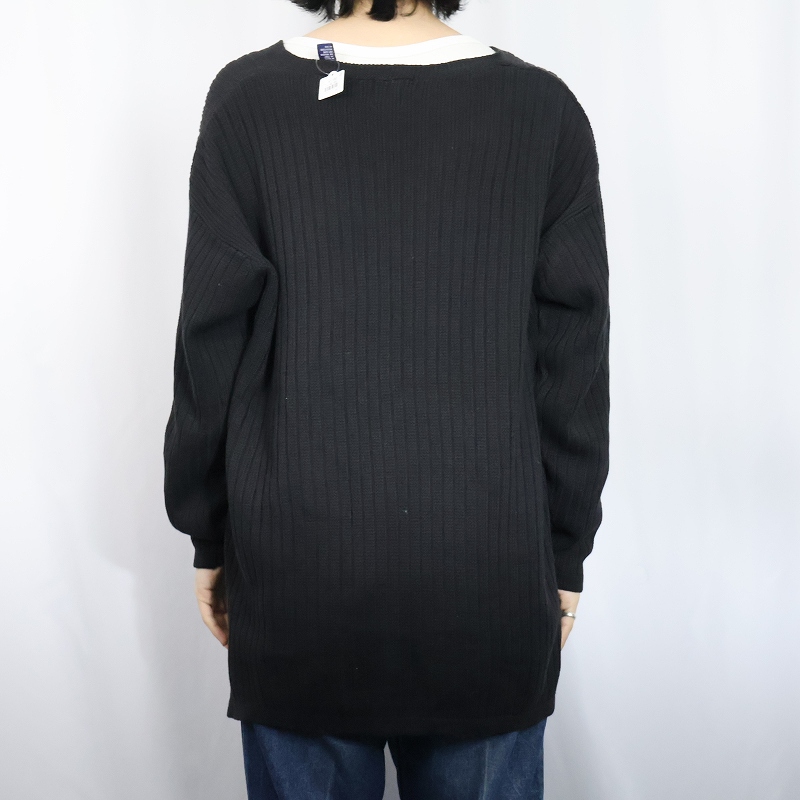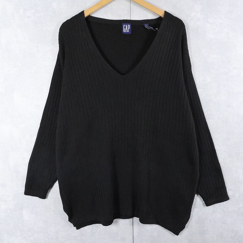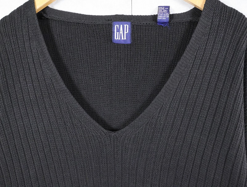 90's GAP Vネック コットンニットセーター BLACK M [163972]