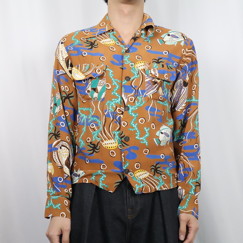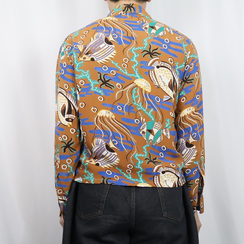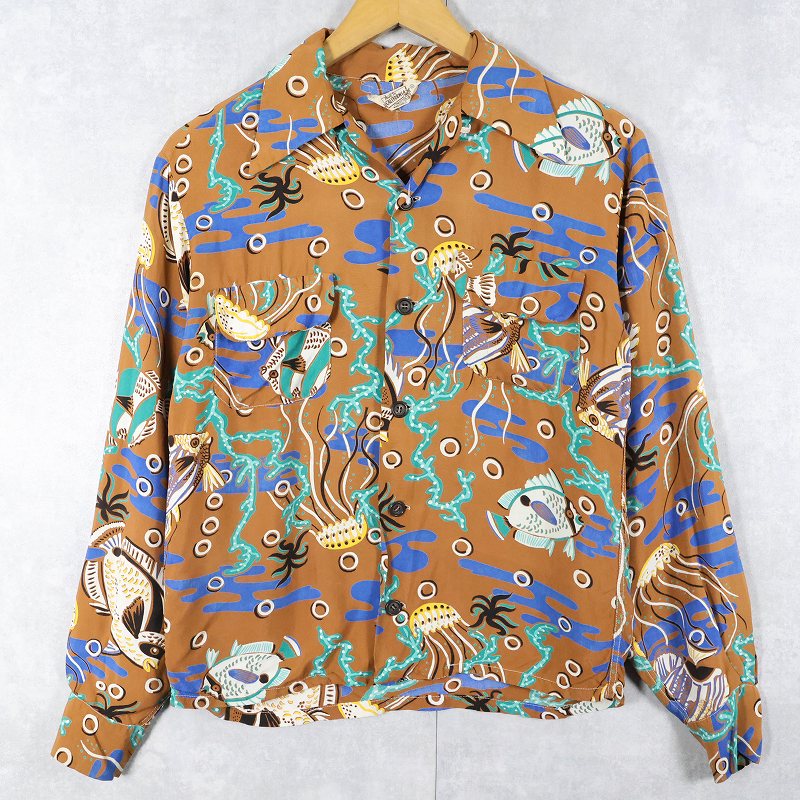 40〜50's California クラゲ柄 レーヨンアロハシャツ S [163978]