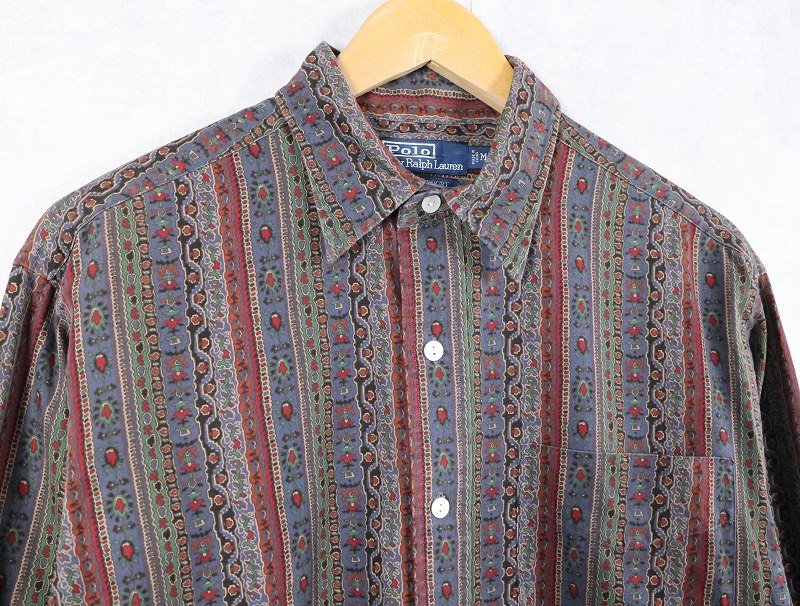 POLO Ralph Lauren "LOWELL SPORT" 総柄 シルク×コットン シャツ M [164011]