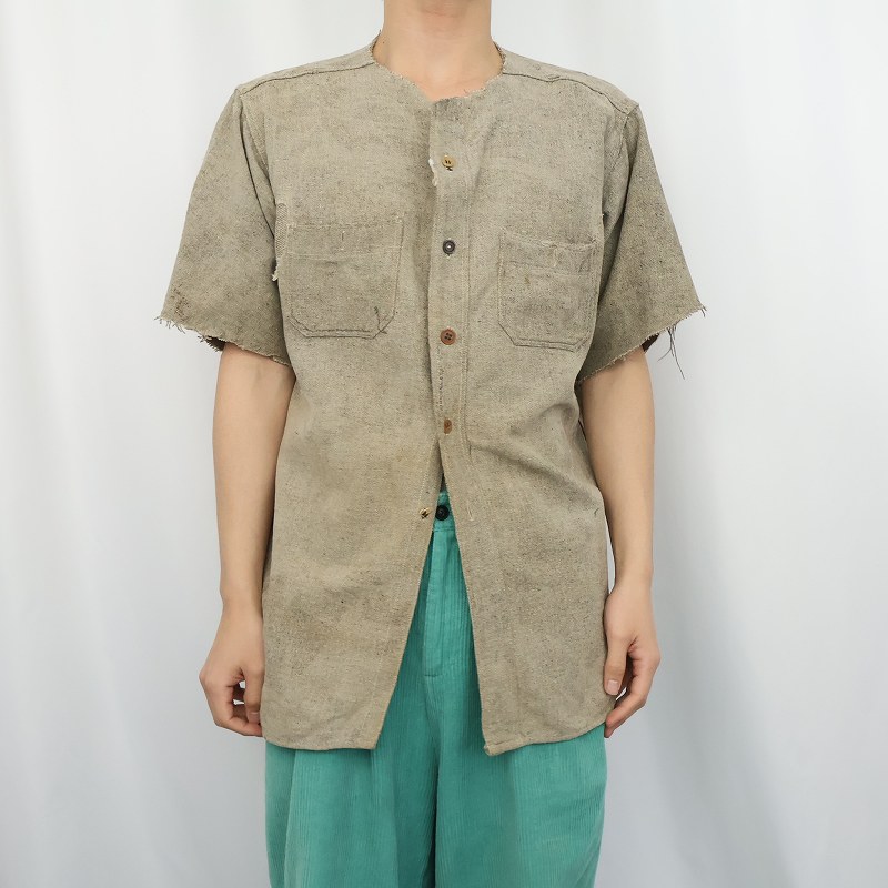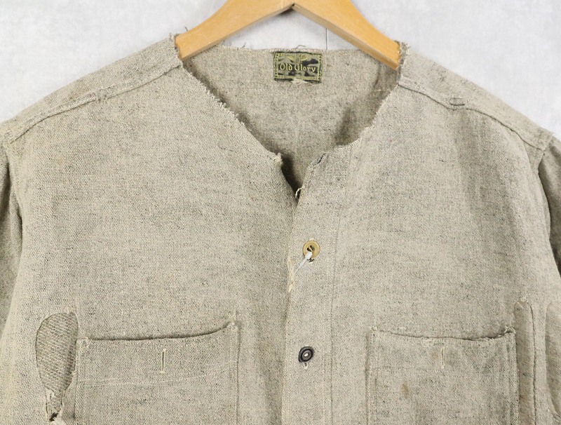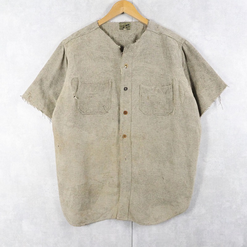 30〜40's Old Glory マチ付き カットオフスリーブ ウールシャツ [164020]