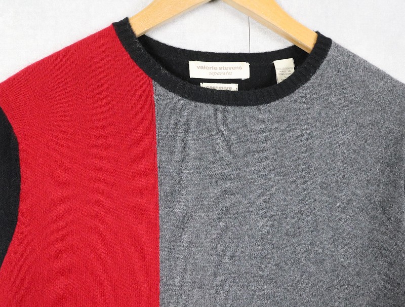 valerie stevens パネル切り替え カシミアニットセーター L [164031]