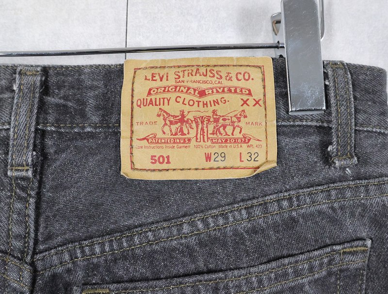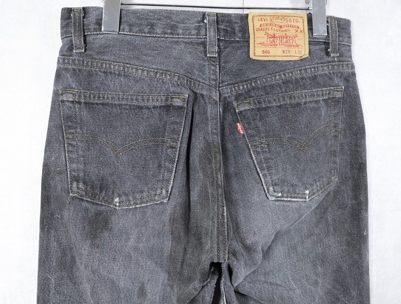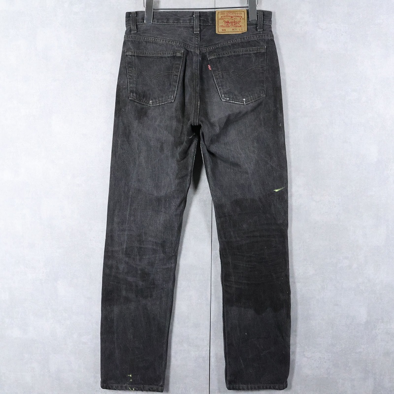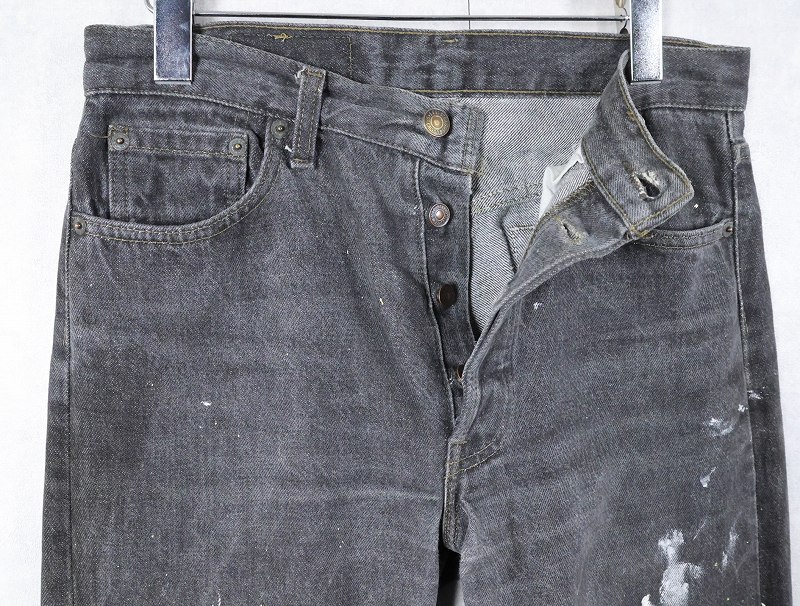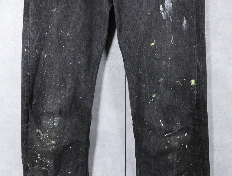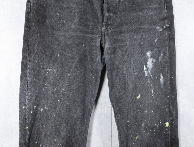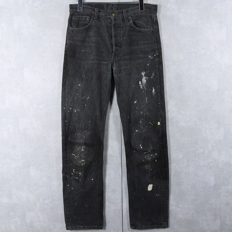 80〜90's Levi's 501 USA製 先染め ペンキペイント ブラックデニムパンツ W31 [164054]