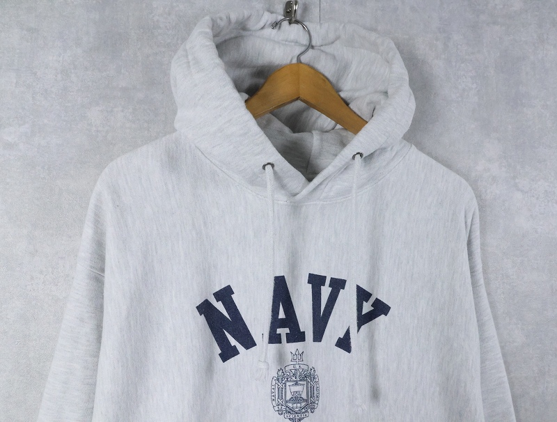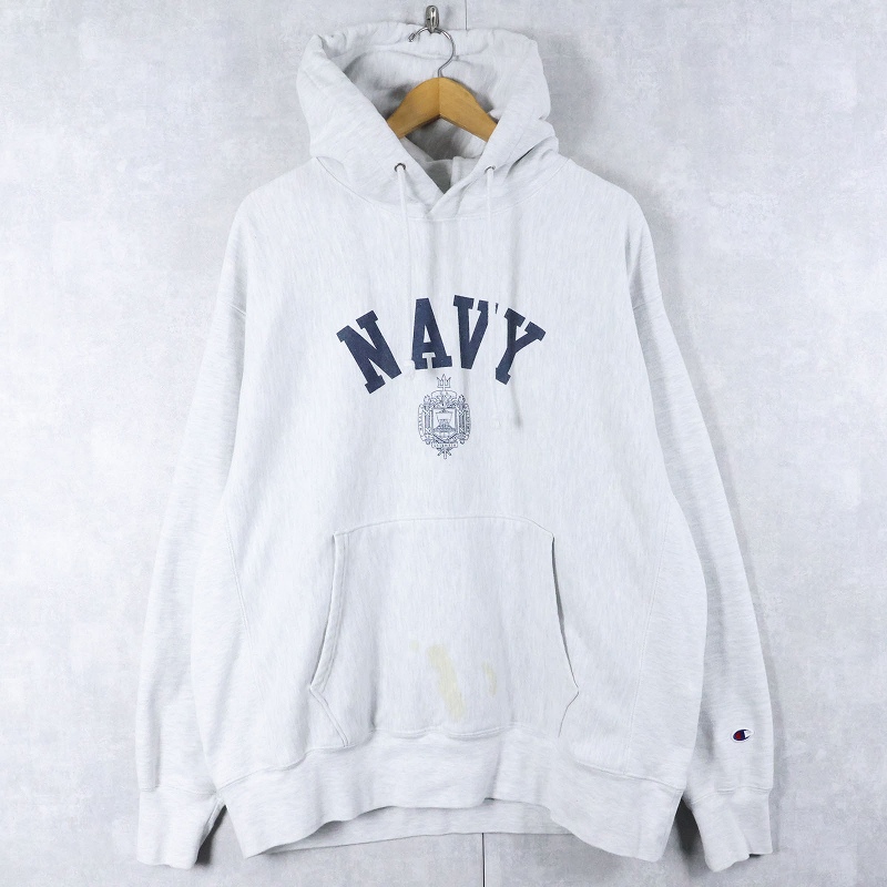 Champion REVERSE WEAVE "NAVY" プリントスウェットフーディー XL [164056]