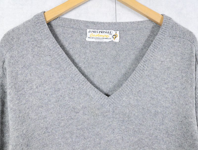 80's JAMES PRINGLE Vネック カシミアニットセーター [164082]