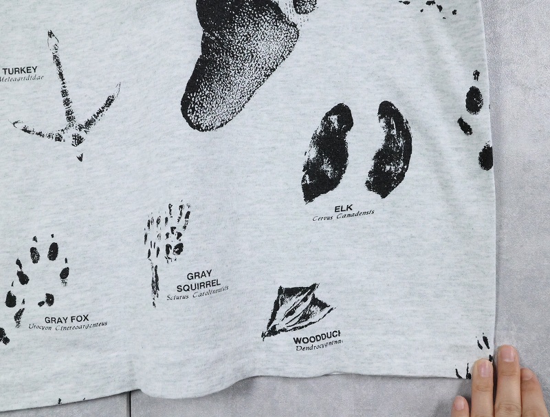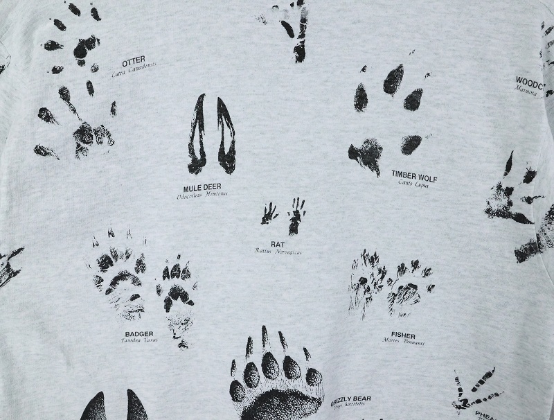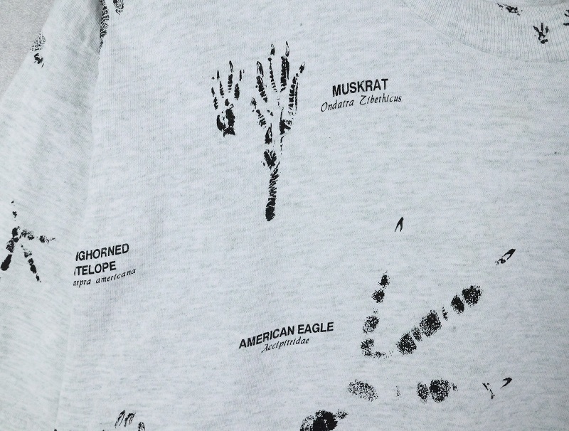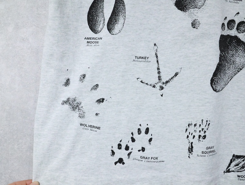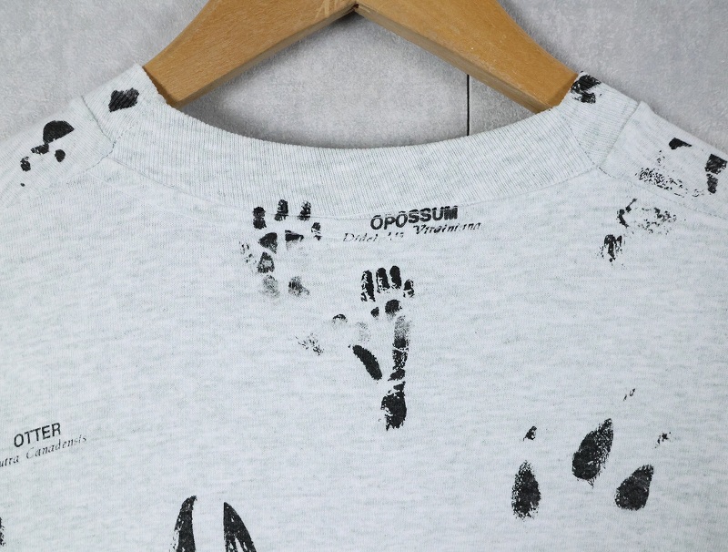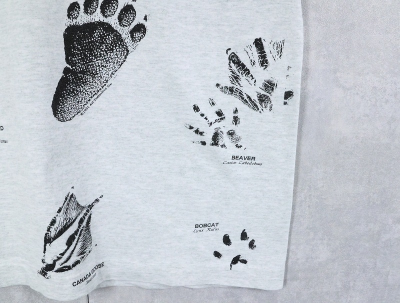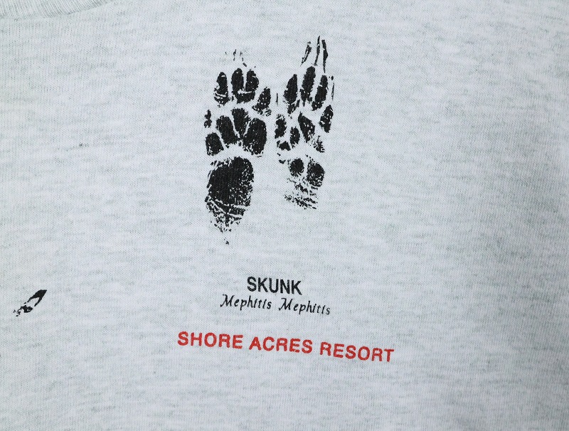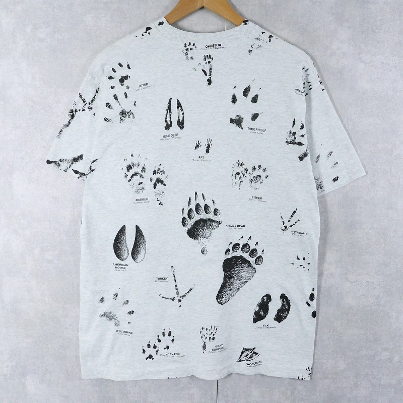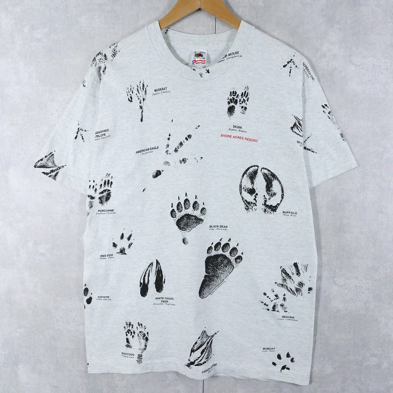 90's USA製 "SHORE ACRES RESORT" 足跡プリントTシャツ L [164125]