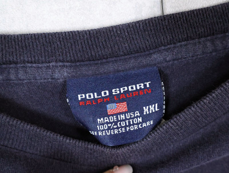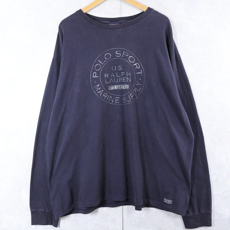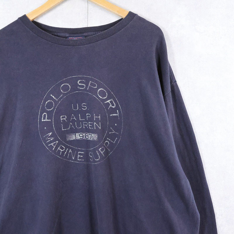 90's POLO SPORT Ralph Lauren USA製 プリントロンT NAVY XXL [164148]