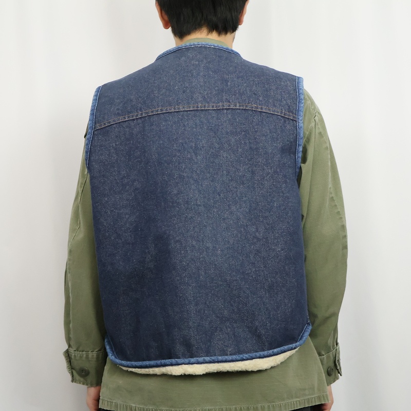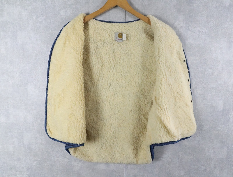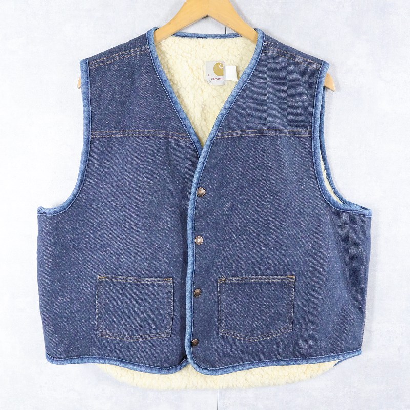 70's Carhartt プリントタグ ボアライナー デニムベスト XL [164195]