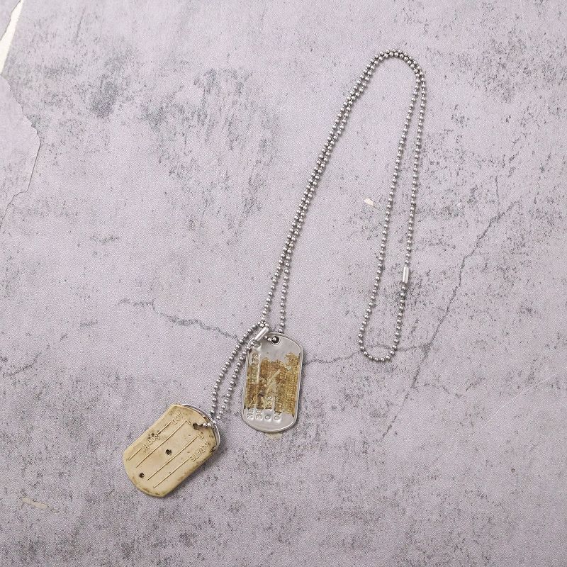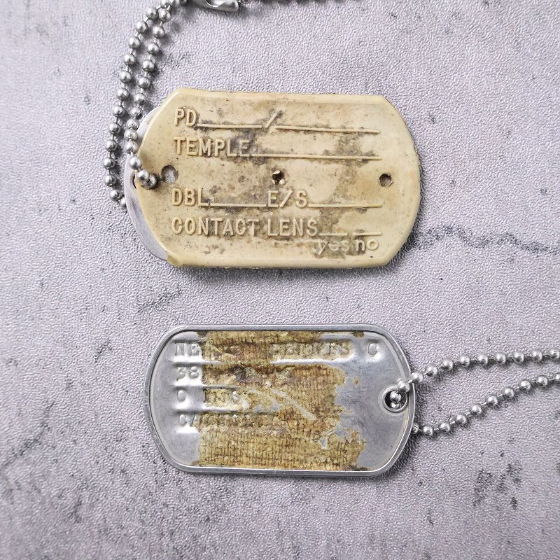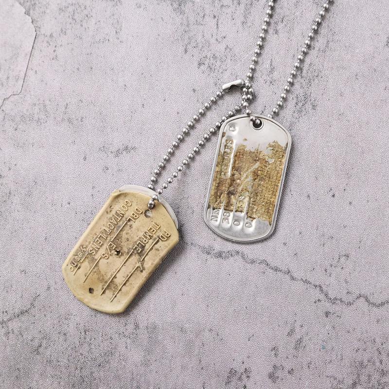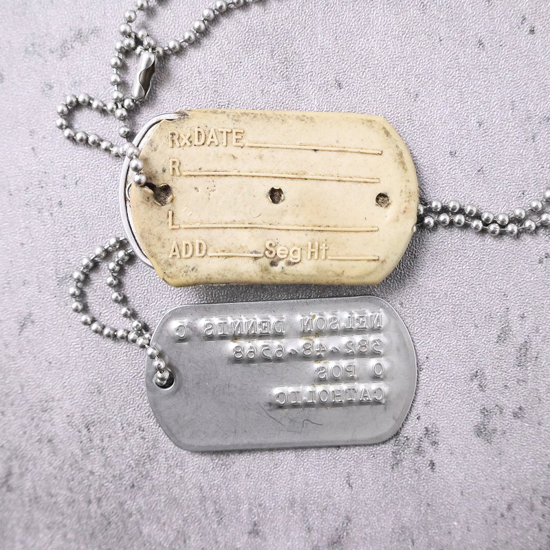 名前や血液型が刻印された無骨なデザインは、スウェットやTシャツ、デニムなどラフなスタイルと好相性です。