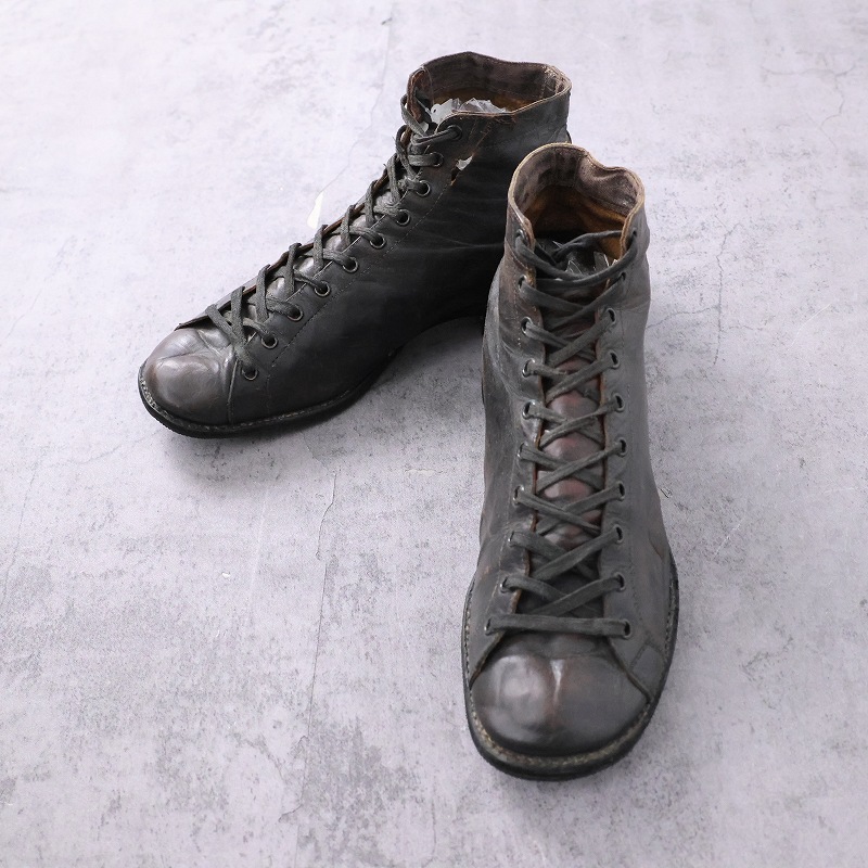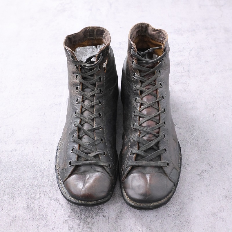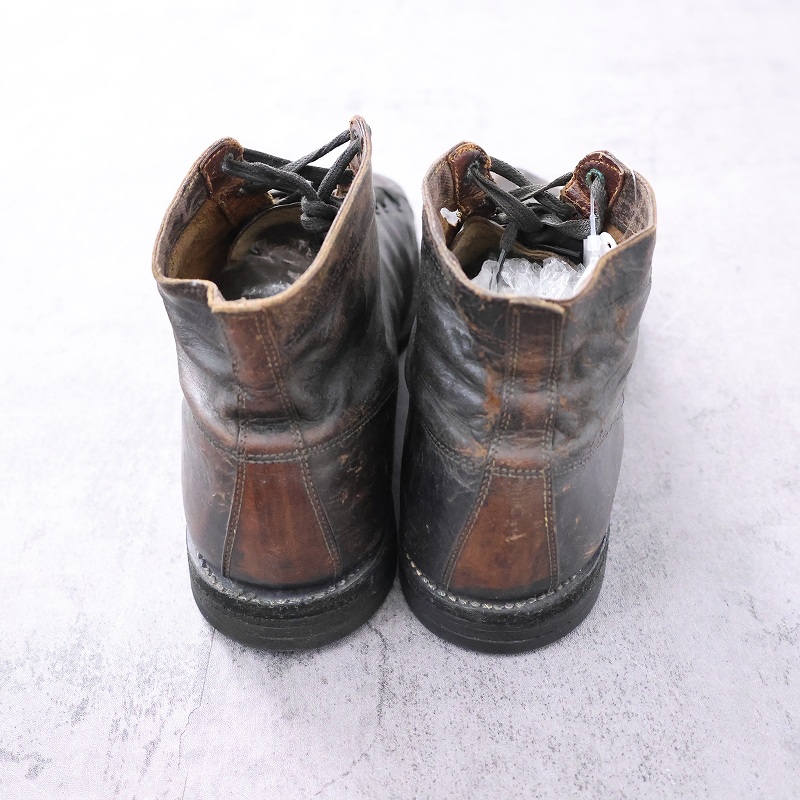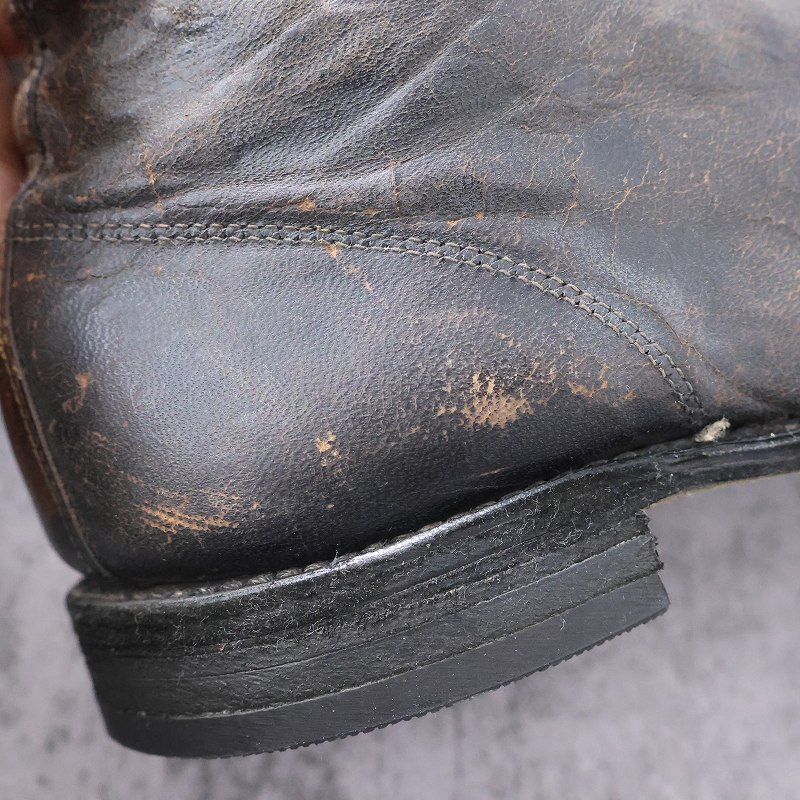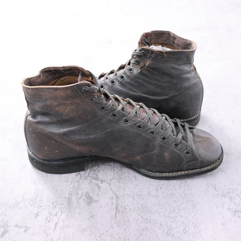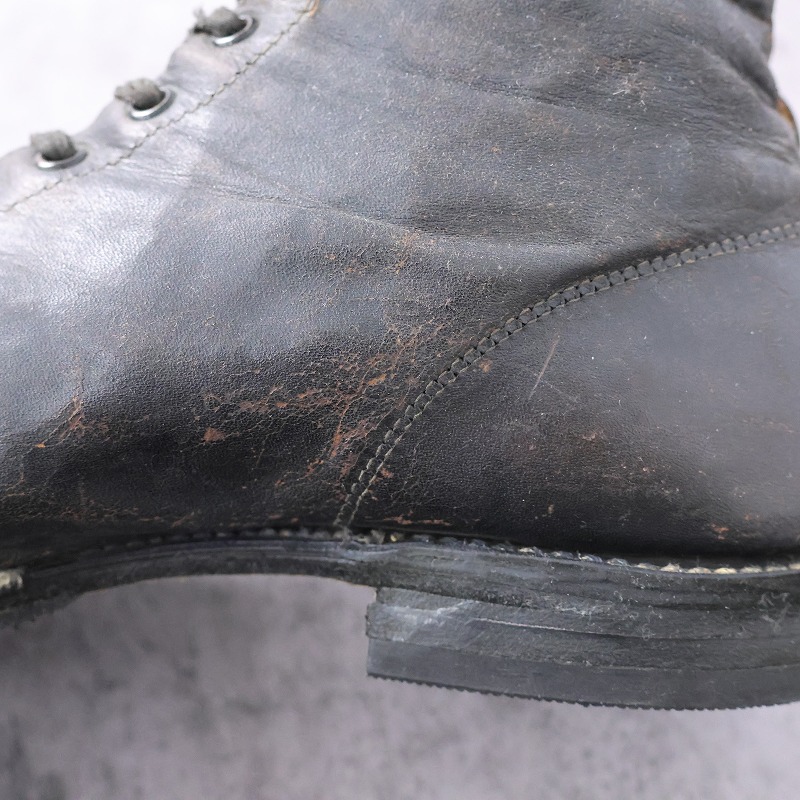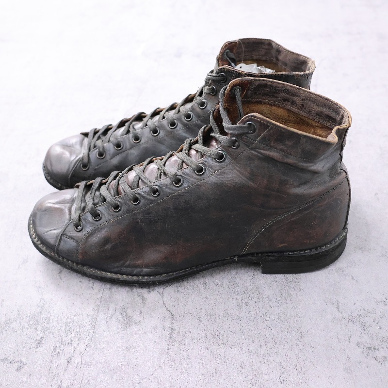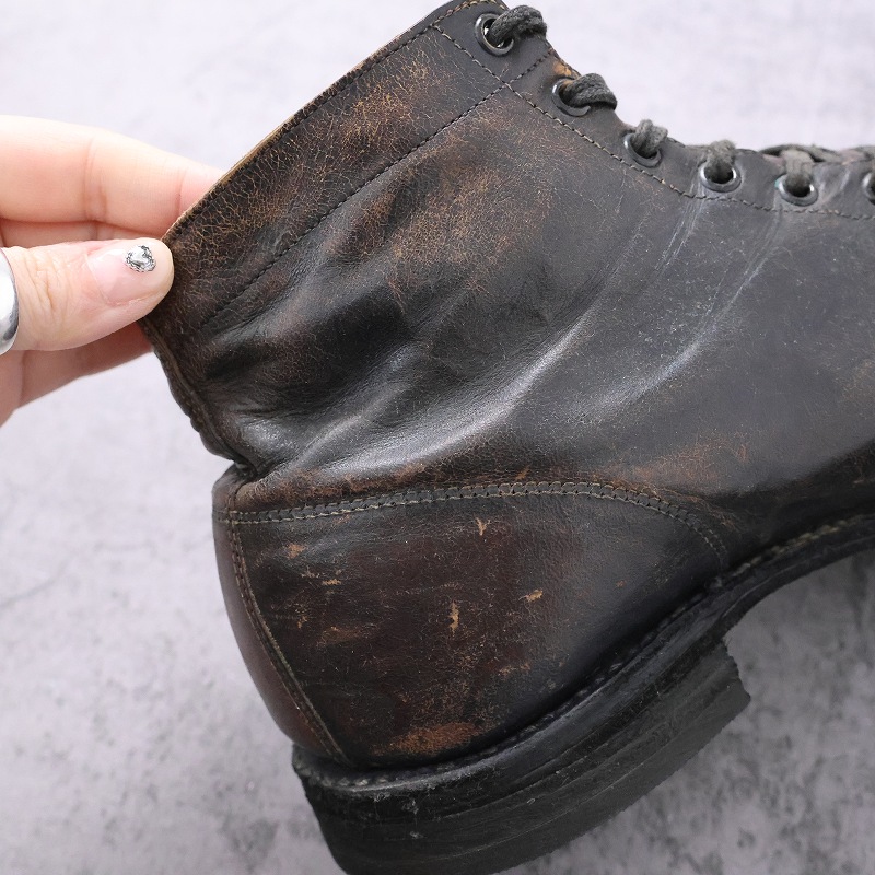 一枚革で構成された無骨なアッパーは、ワークブーツらしい実用性と当時の製靴技術を色濃く感じさせます。