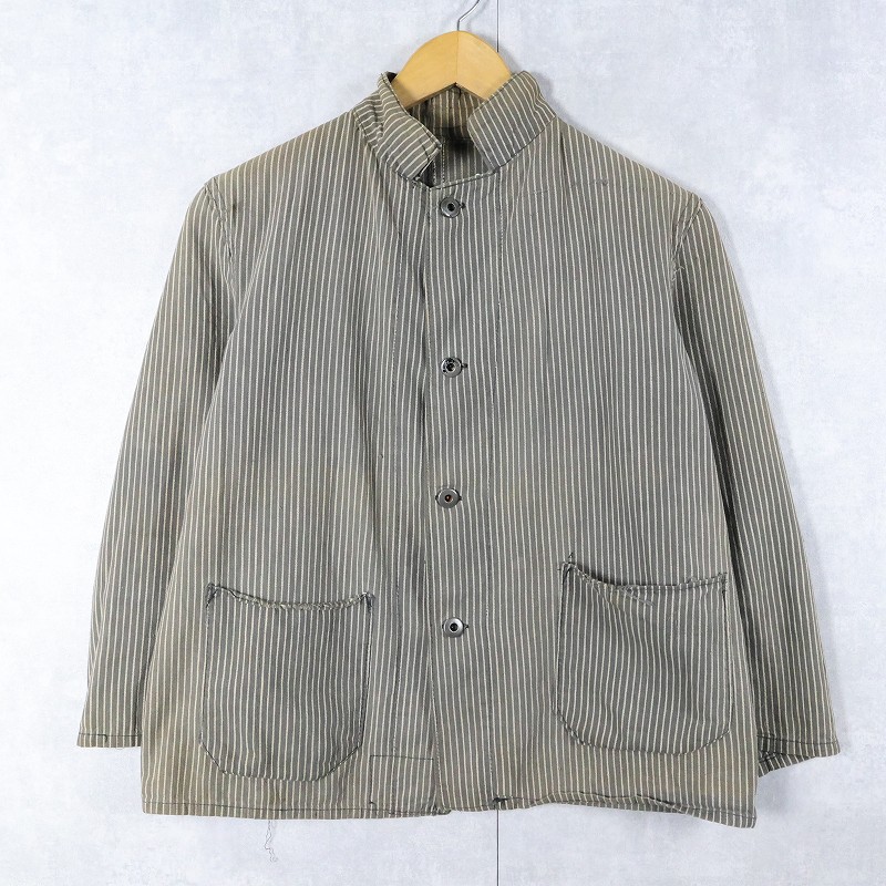 〜30's ストライプ柄 ドーナツボタン カバーオール BLACK [164283]