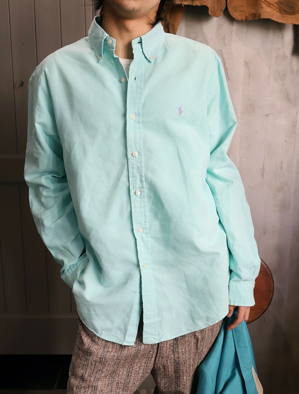 Ralph Lauren ロゴ刺繍 3点留め コットンボタンダウンシャツ L [164317]