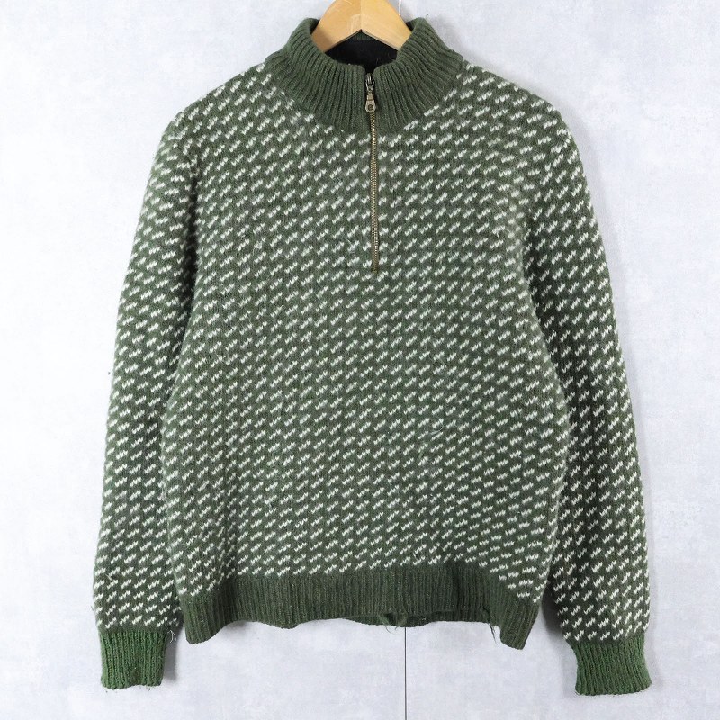 90's L.L.Bean NORWAY製 バーズアイ柄 ハーフジップニットセーター M [164334]