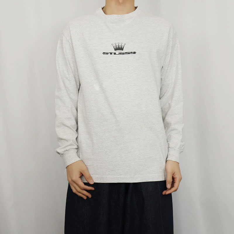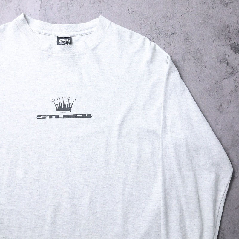 80's STUSSY 黒タグ USA製 "CROWN" プリントロンT L [164359]