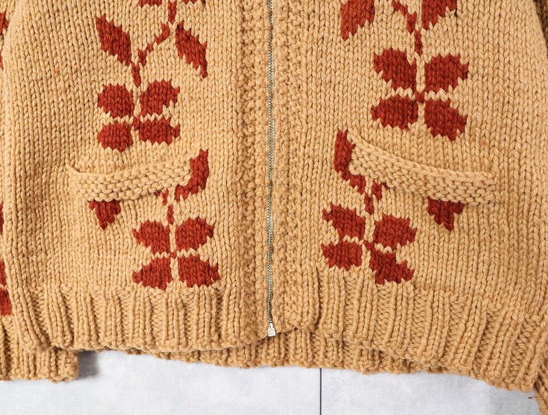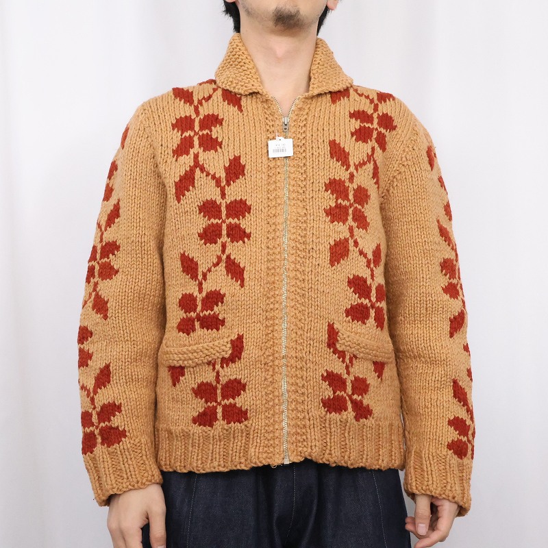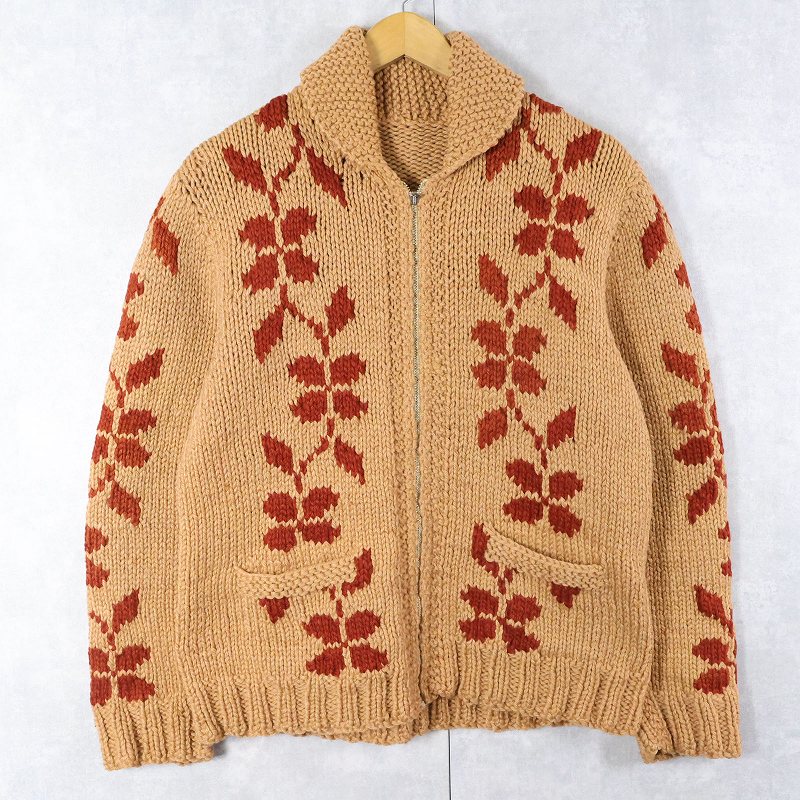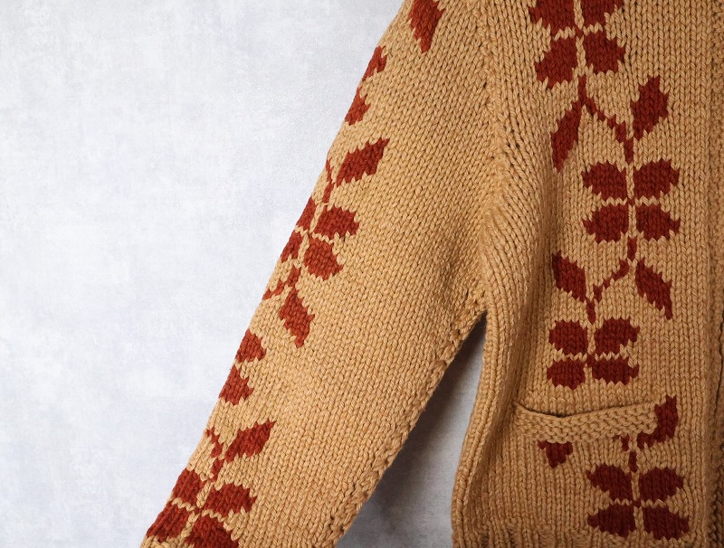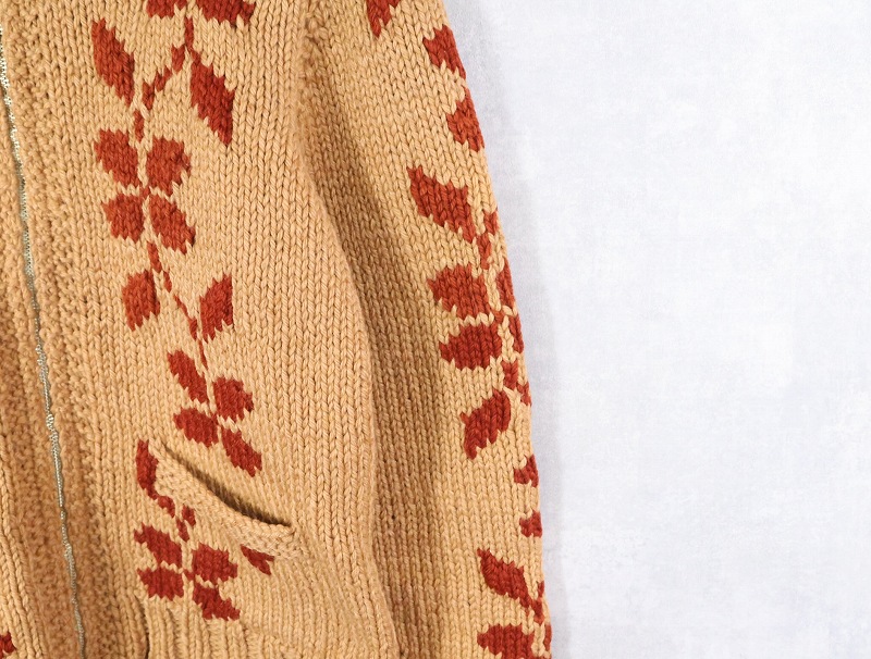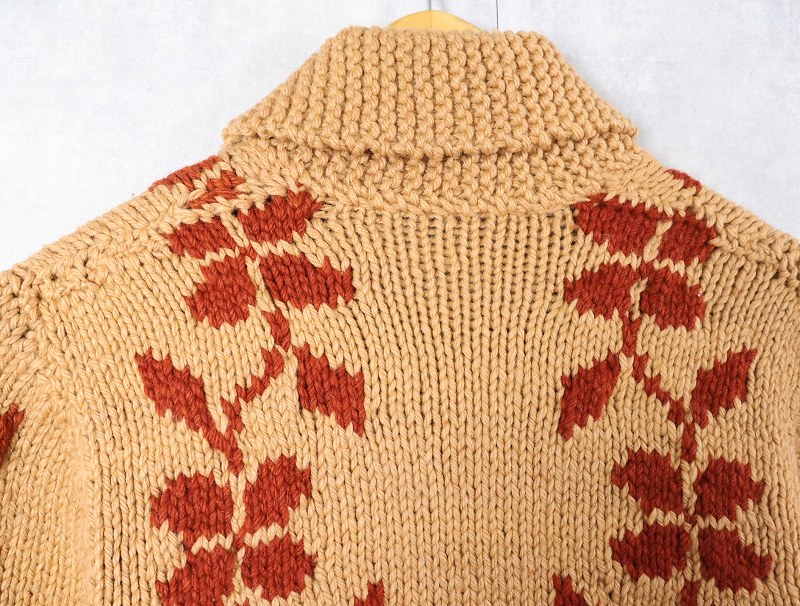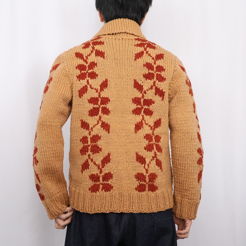 60's 植物柄 ショールカラー カウチンニットジャケット [164369]