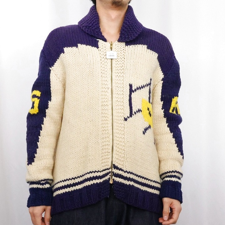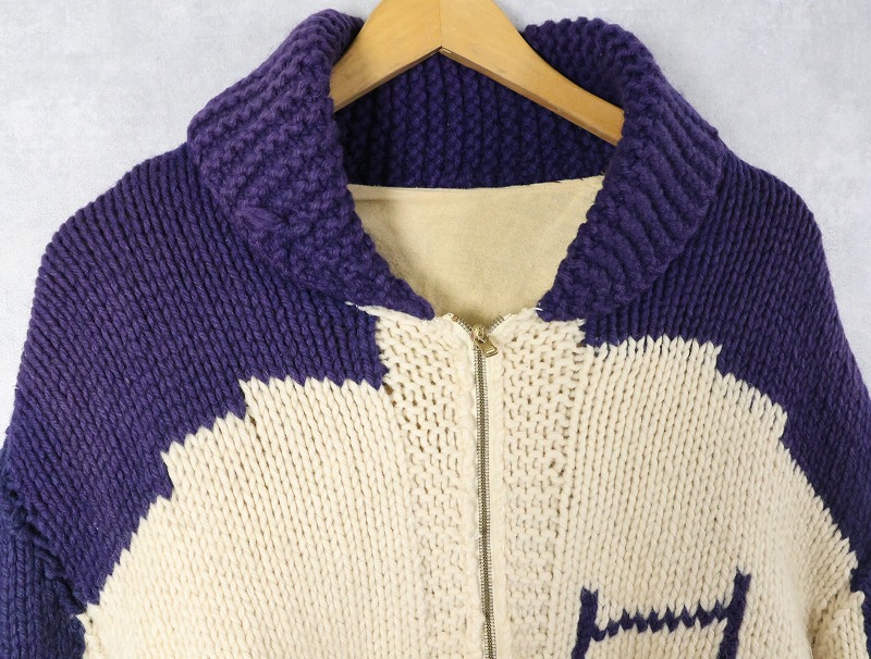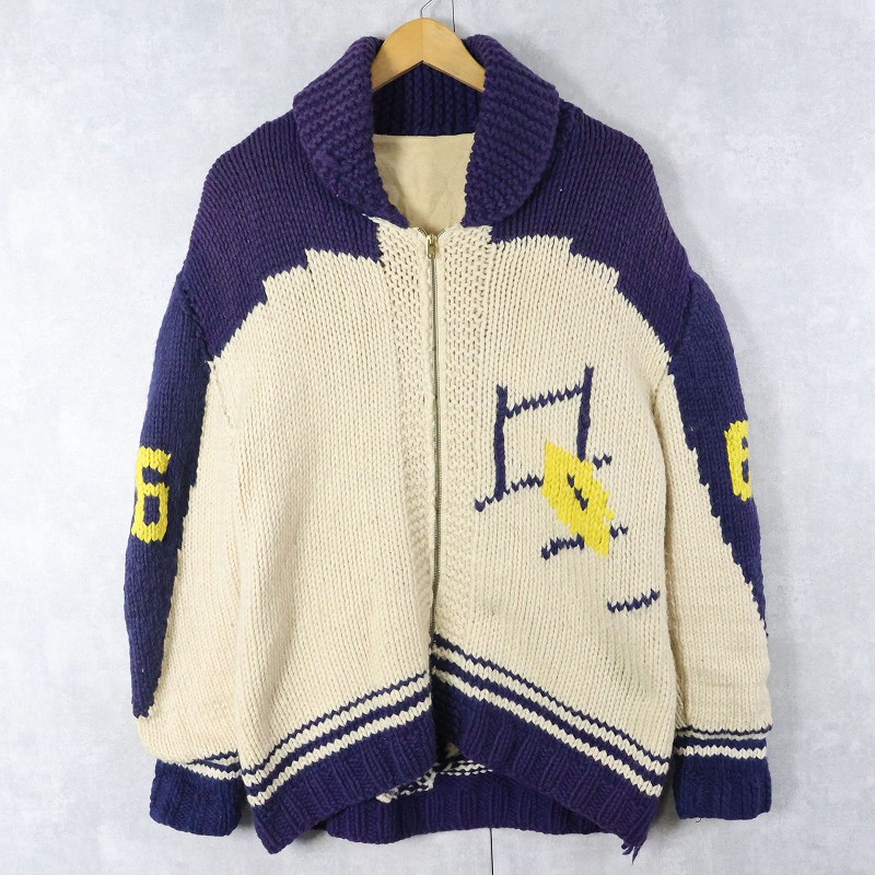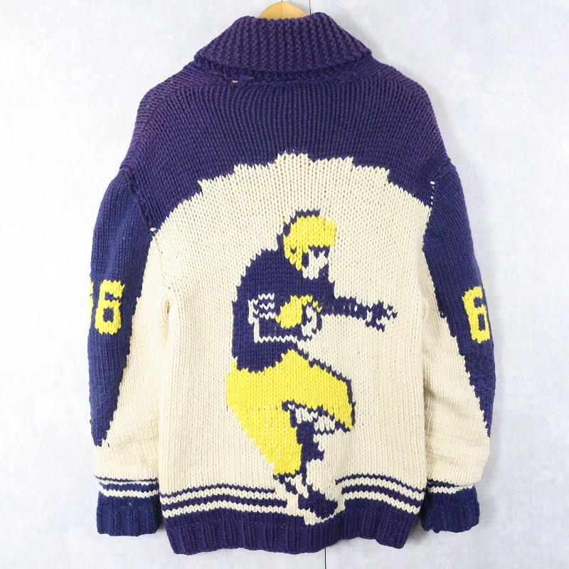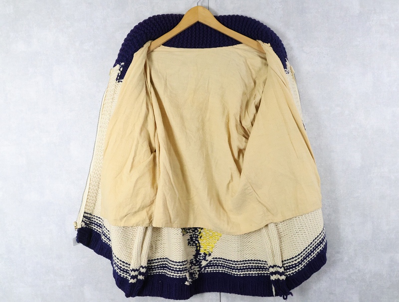 60's フットボール柄 ショールカラー カウチンニットジャケット [164371]