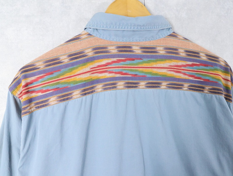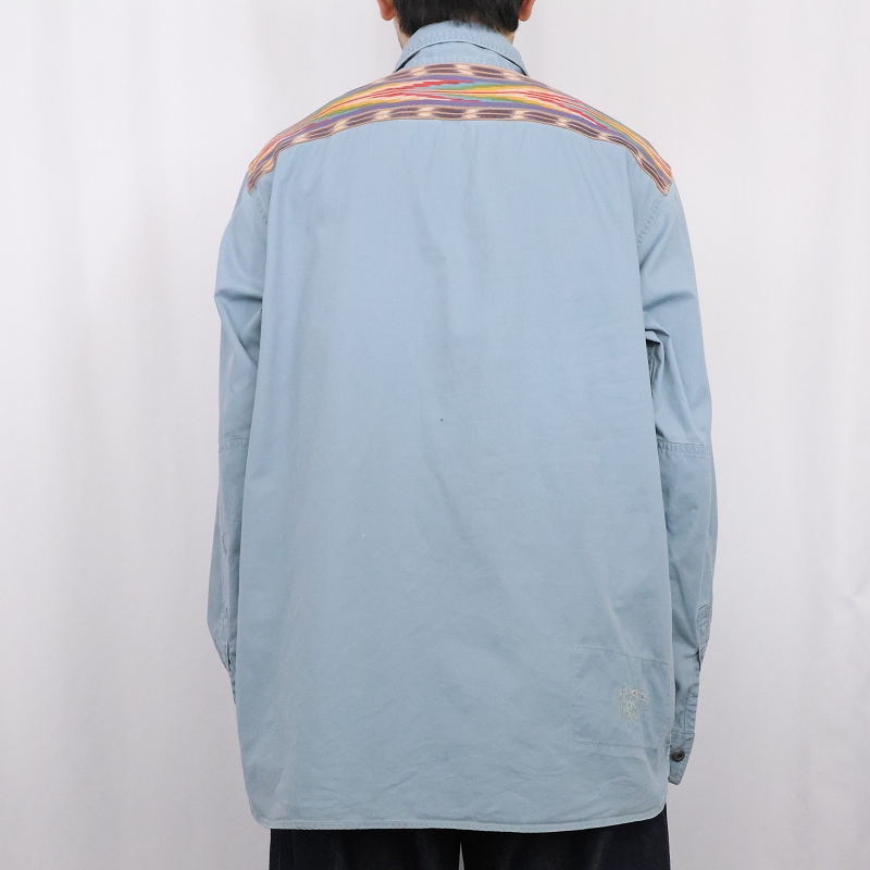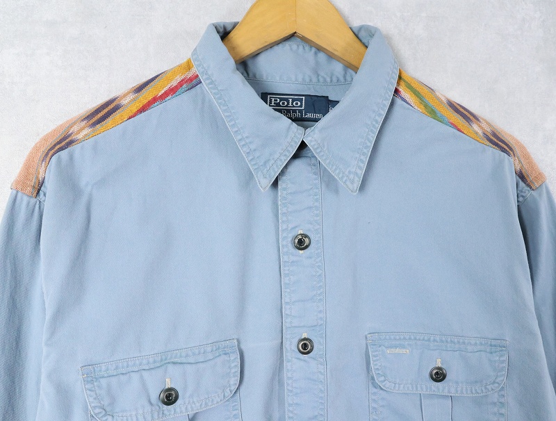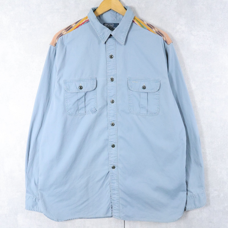 POLO Ralph Lauren ネイティブ柄切り替え マチ/チンスト付き コットンワークシャツ XL [164376]