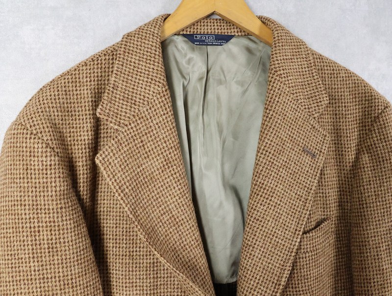 90's POLO Ralph Lauren USA製 柄織り ウールテーラードジャケット SIZE46R [164382]