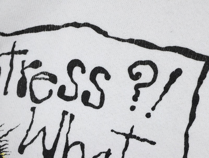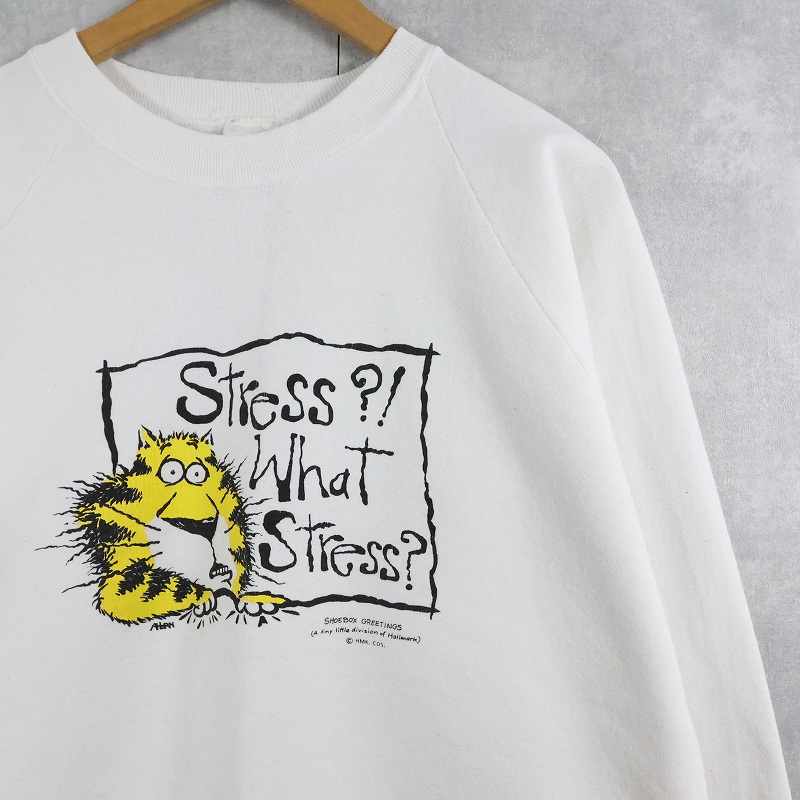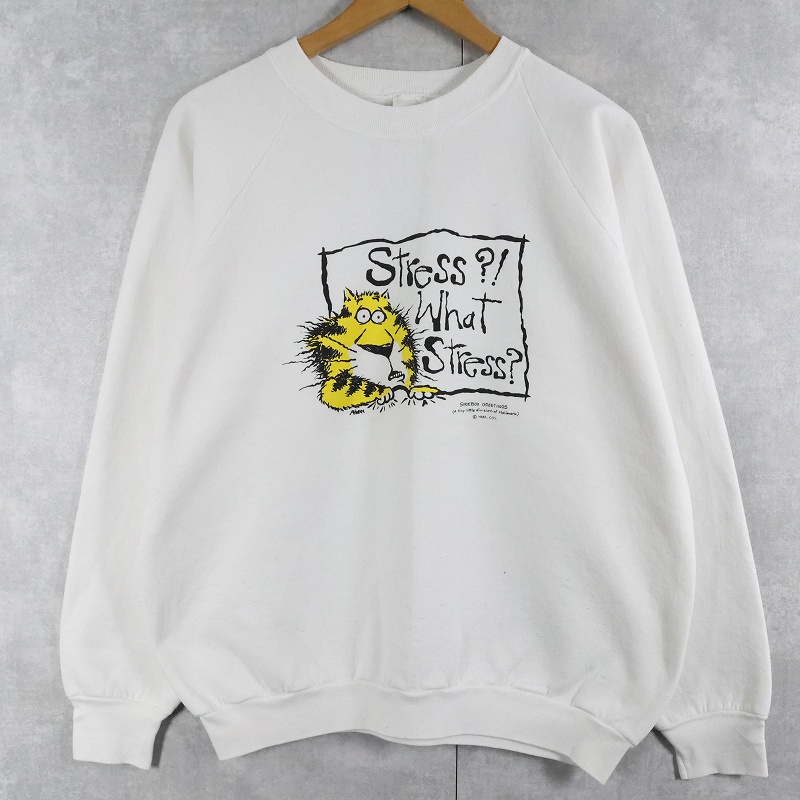 90's SHOEBOX USA製 "Stress?! What Stres?" イラストプリントラグランスウェット XL [164402]