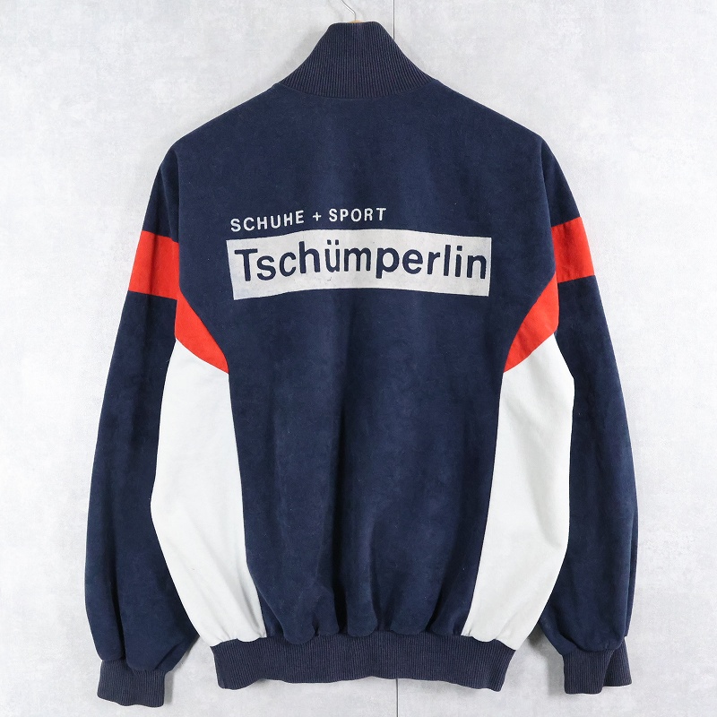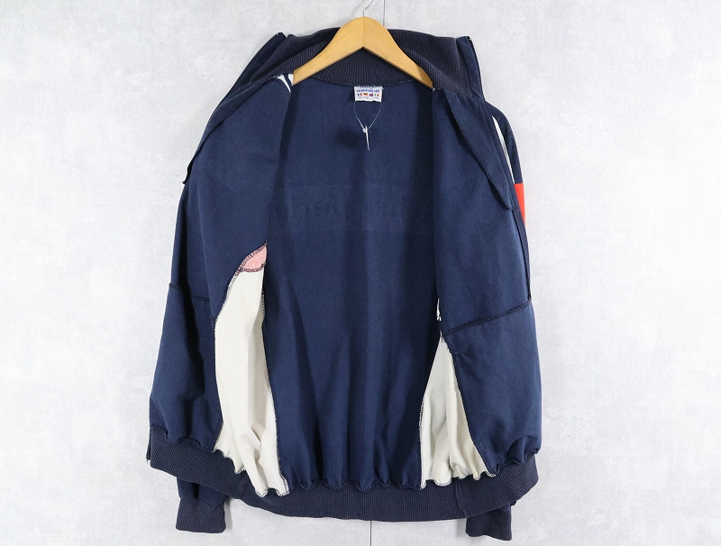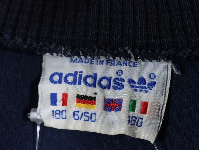 80's adidas FRANCE製 切り替えデザイン フロッキープリント ベロアトラックジャケット NAVY SIZE180 [164411]