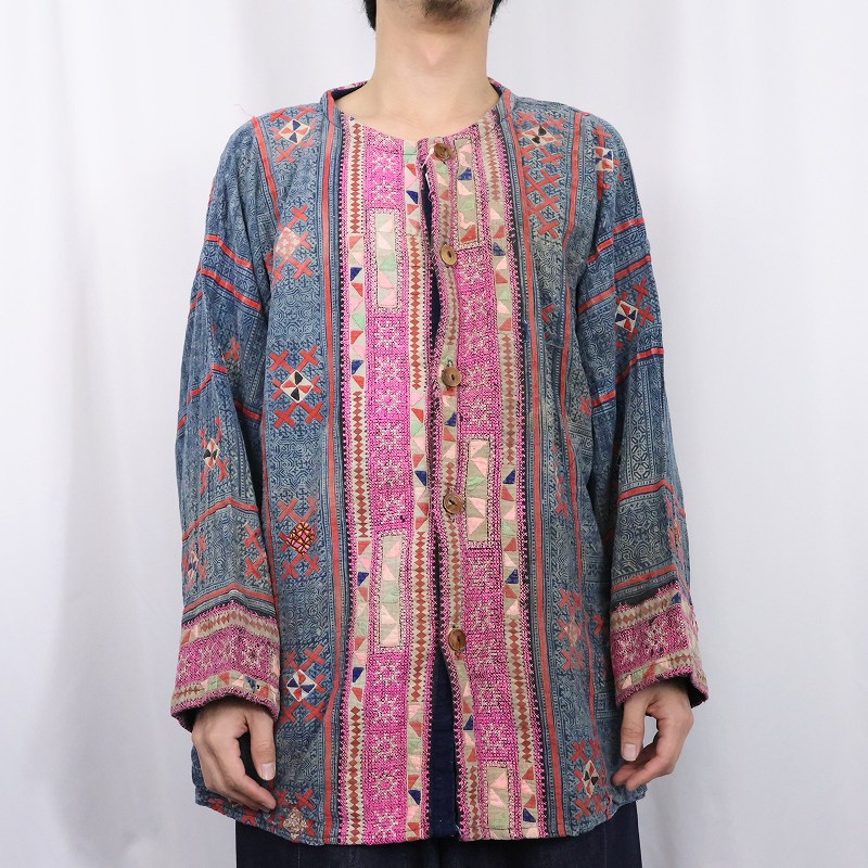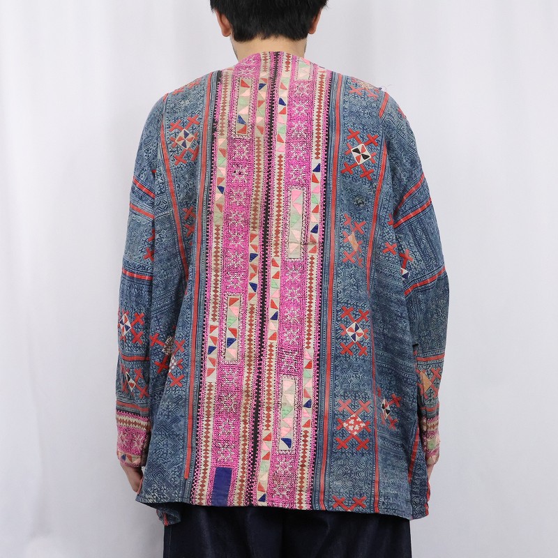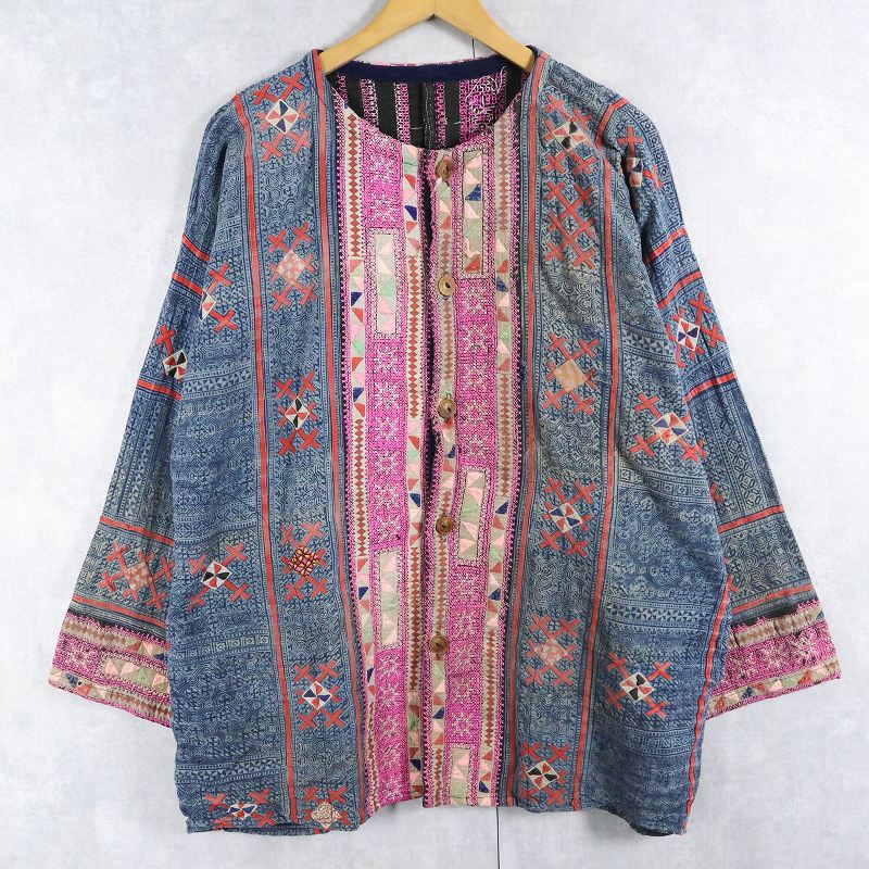 モン族 パッチワーク×刺繍 エスニックシャツ [164429]