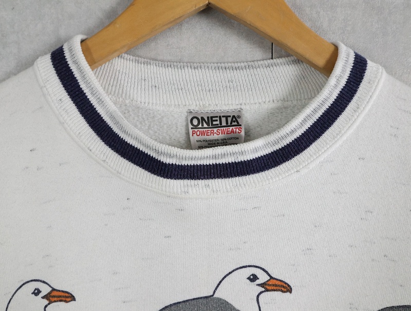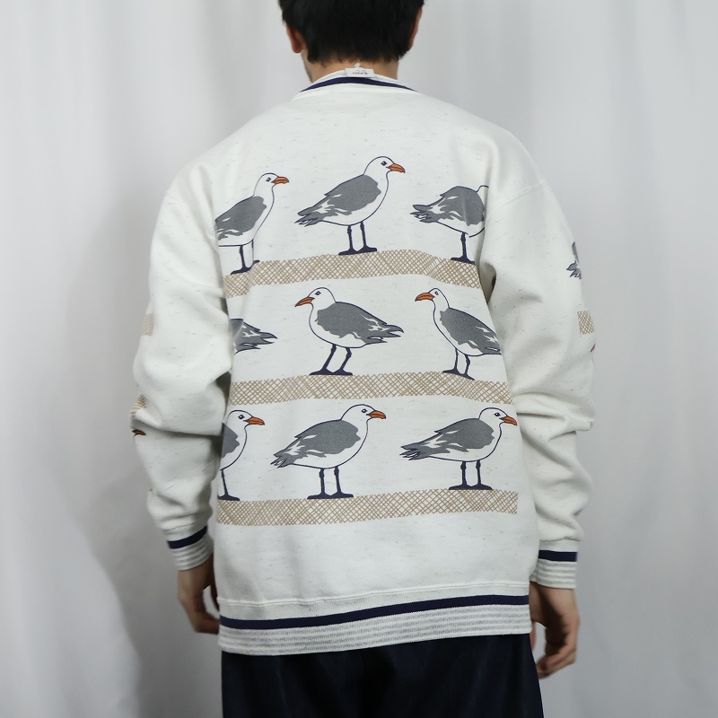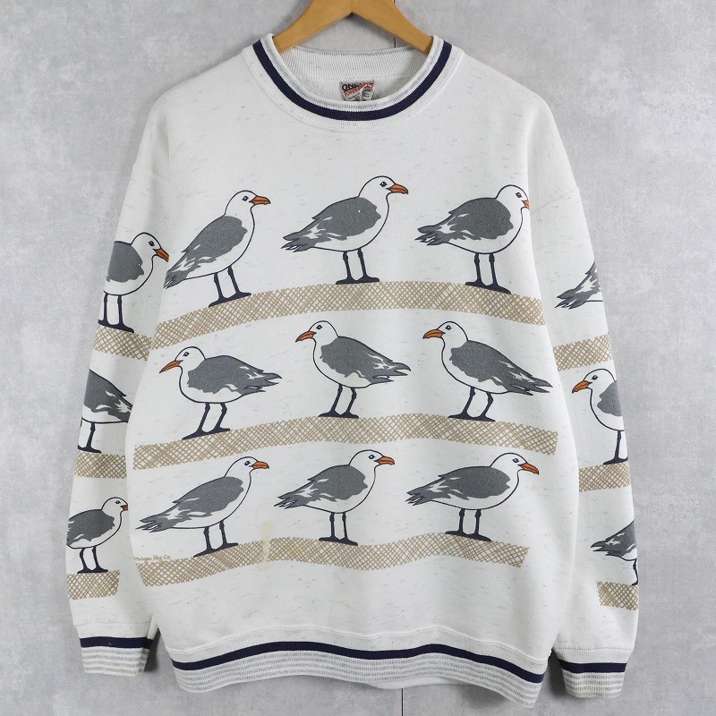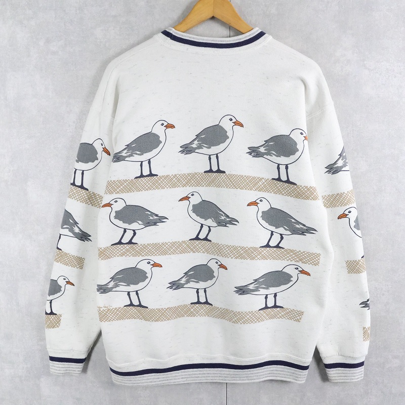 90's MICHIGAN RAG CO. USA製 カモメ柄 プリントスウェット L [164457]