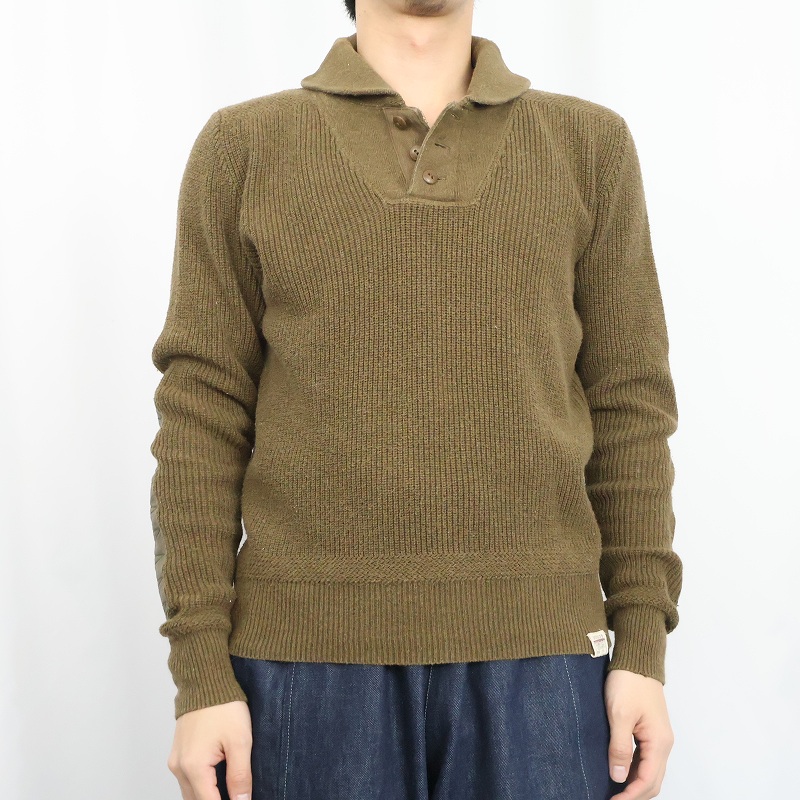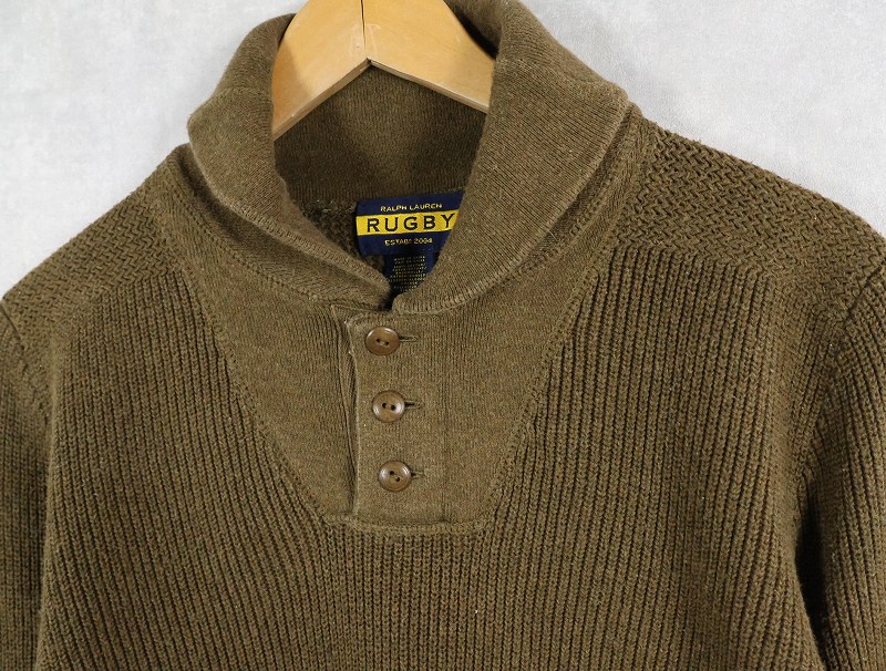 Ralph Lauren RUGBY エルボーパッチ付き ヘンリーネック コットンニットセーター S [164518]