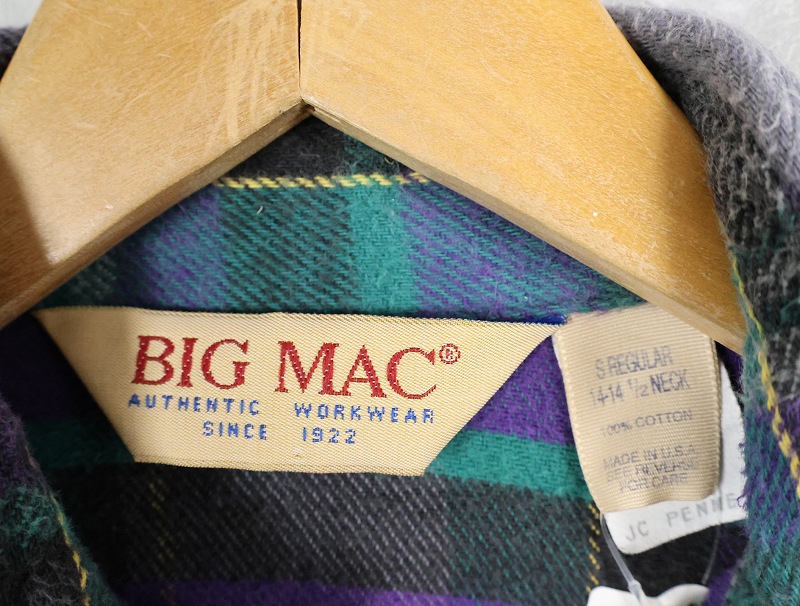90's BIG MAC JCPenney チェック柄 ヘビーネルシャツ S [164527]