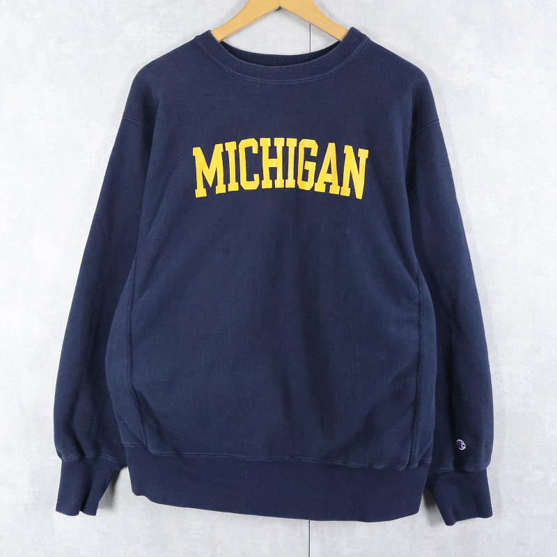 80's Champion REVERSE WEAVE トリコタグ USA製 "MICHIGAN" プリントスウェット NAVY XL [164562]