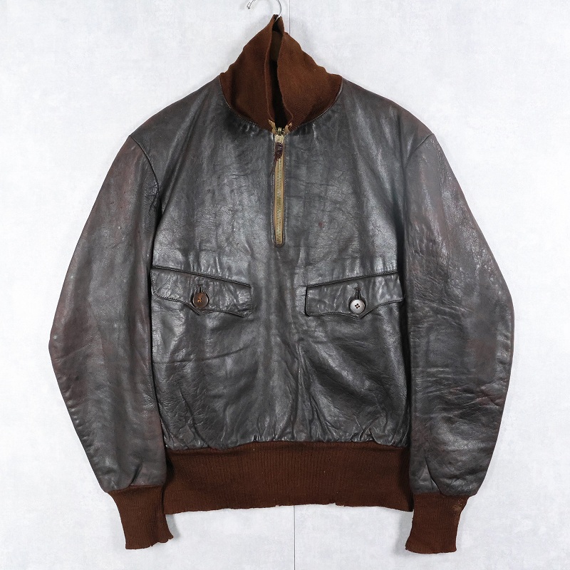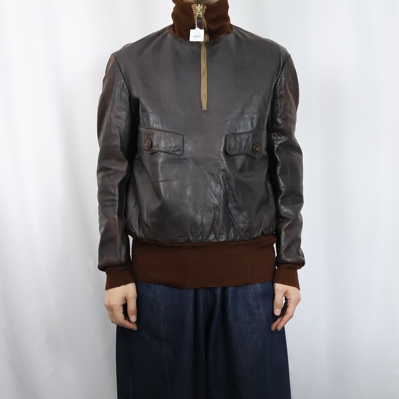 30〜40's GERMAN モーターサイクル ハーフジップレザージャケット [164621]