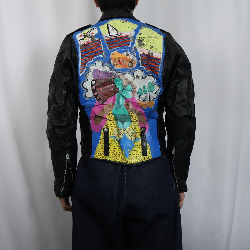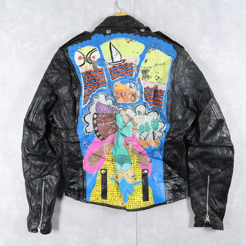 60's HARLEY-DAVIDSON ハンドペイント ダブルライダースジャケット BLACK [164627]