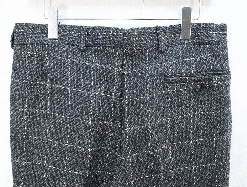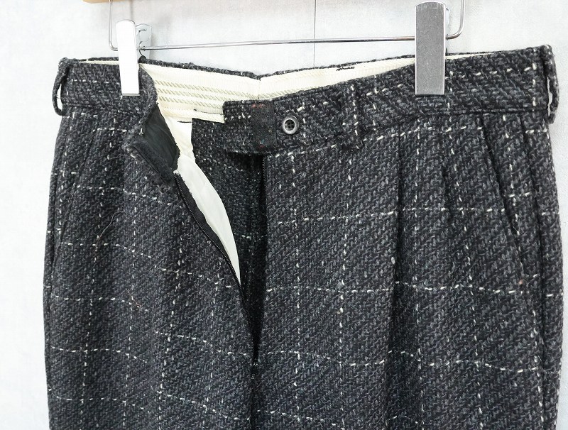 80's〜 チェック柄織り 2タックウールスラックス W33 [164633]