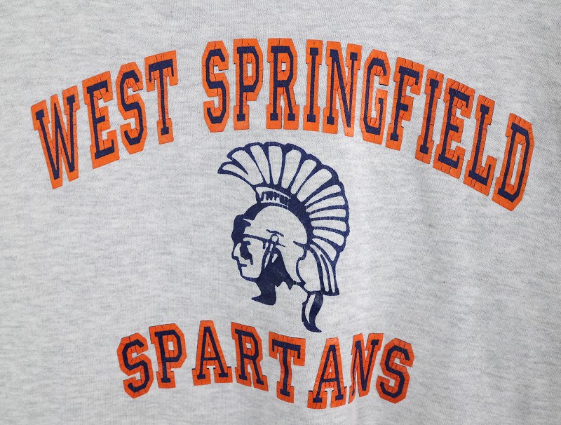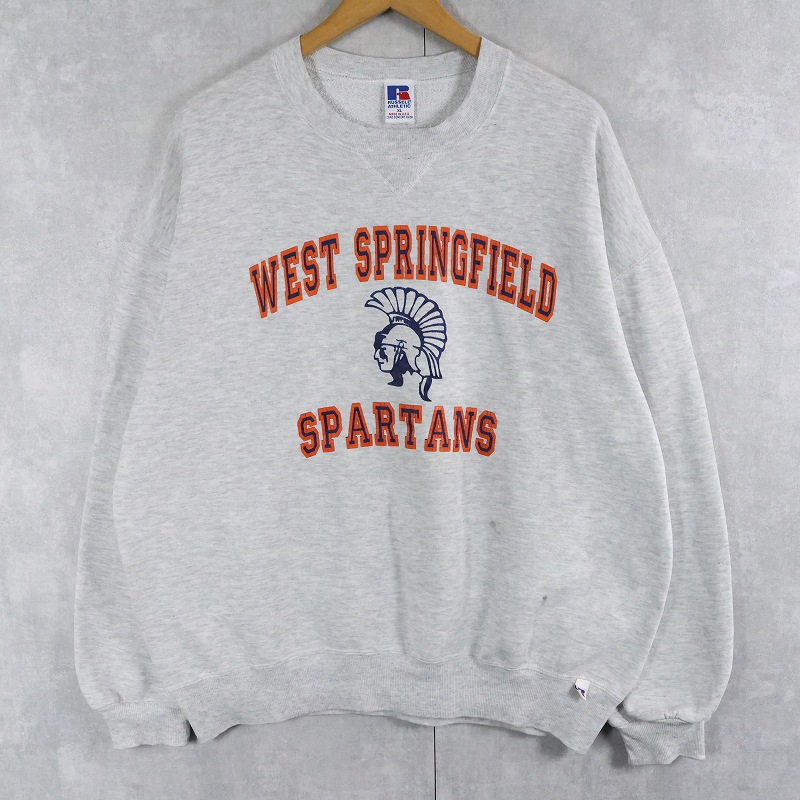 90's RUSSELL ATHLETIC USA製 "WEST SPRINGFIELD SPARTANS" 前V プリントスウェット XL [164693]