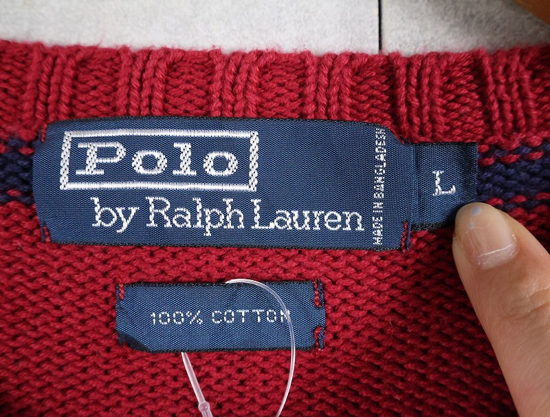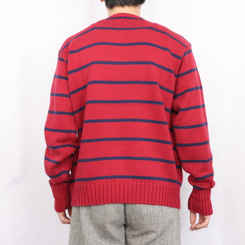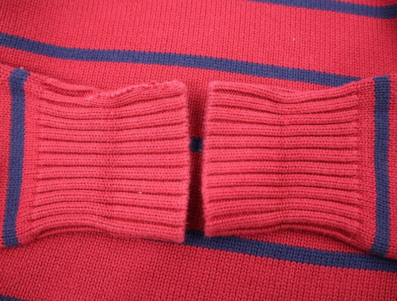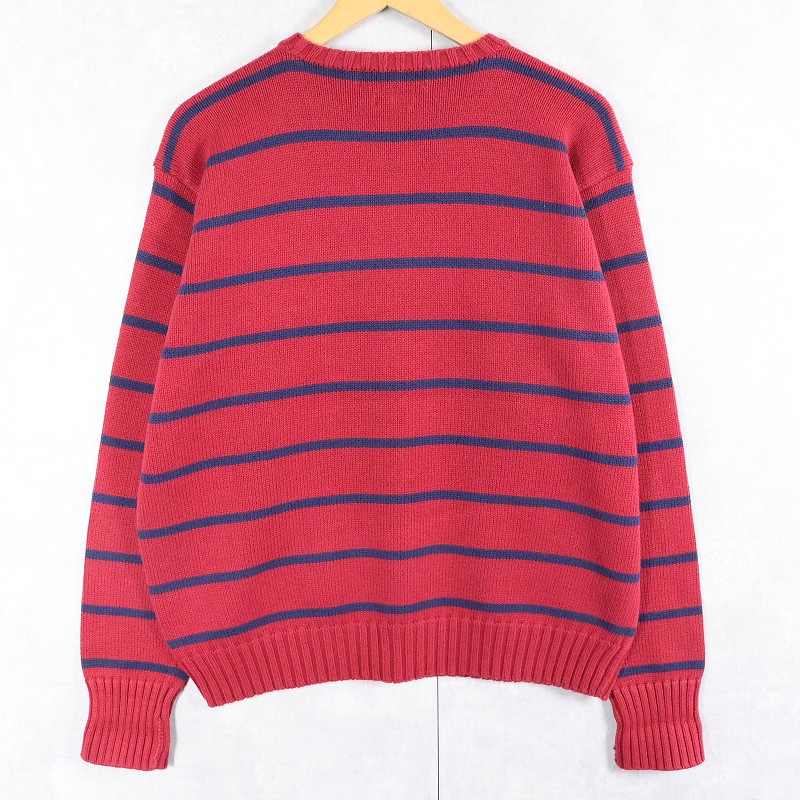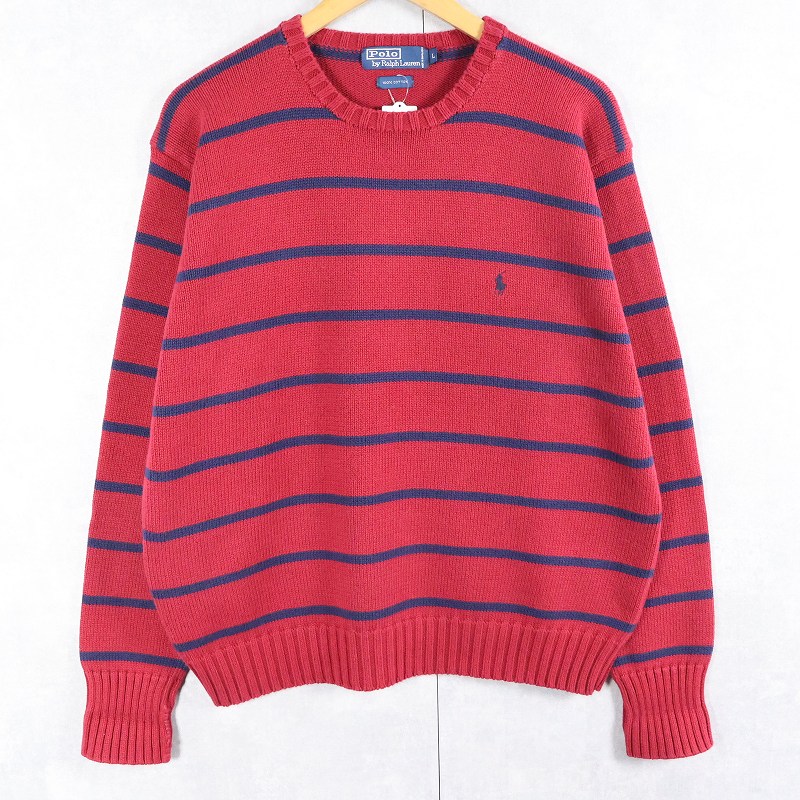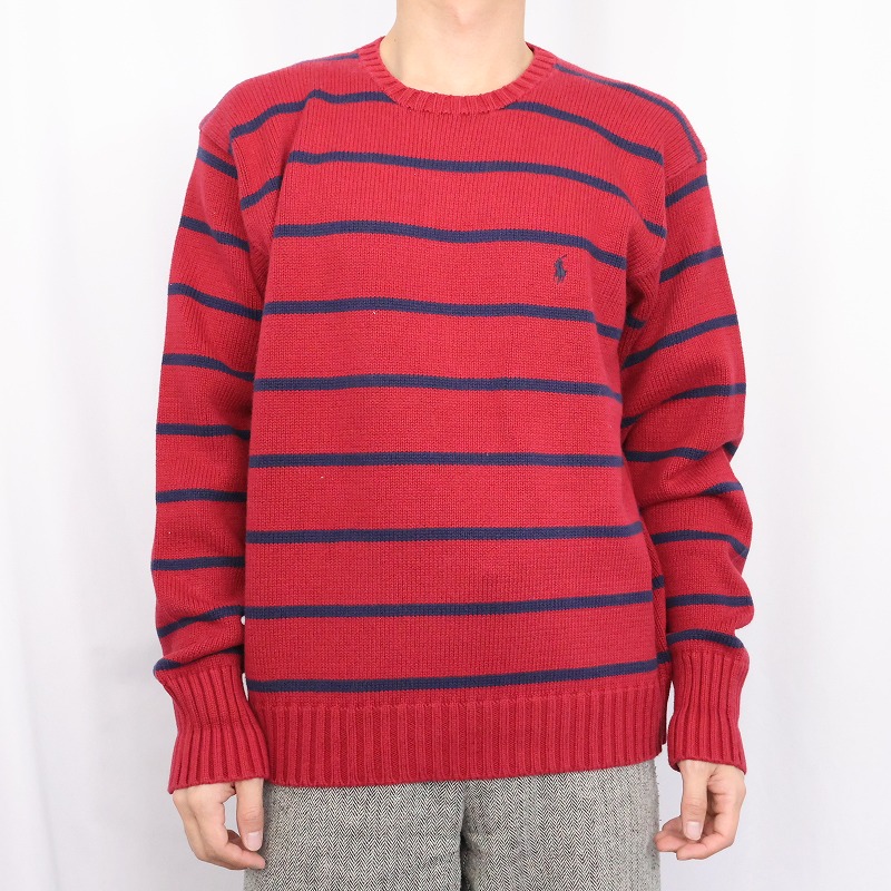 POLO Ralph Lauren ロゴ刺繍 ボーダー柄 コットンニットセーター XL [164701]