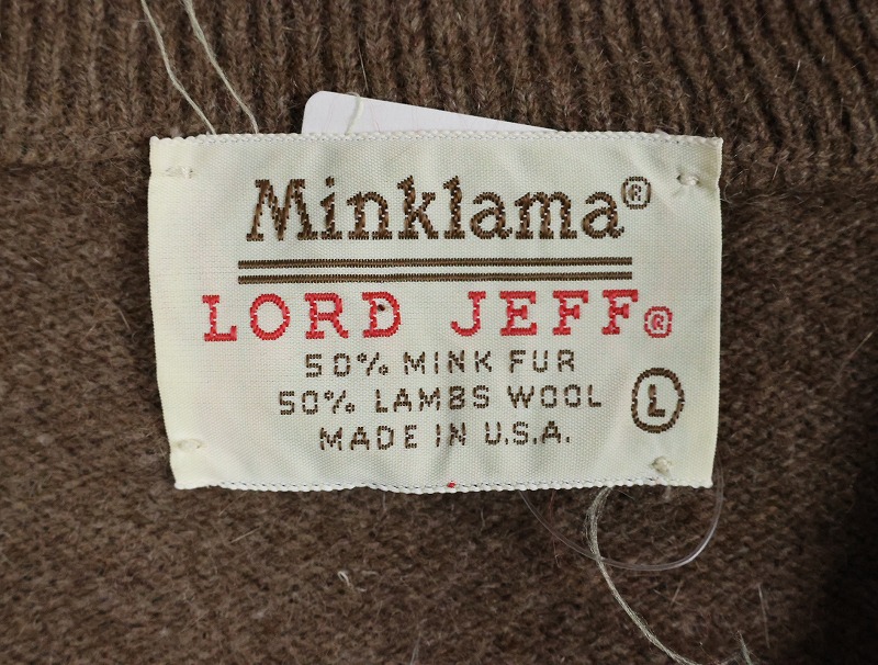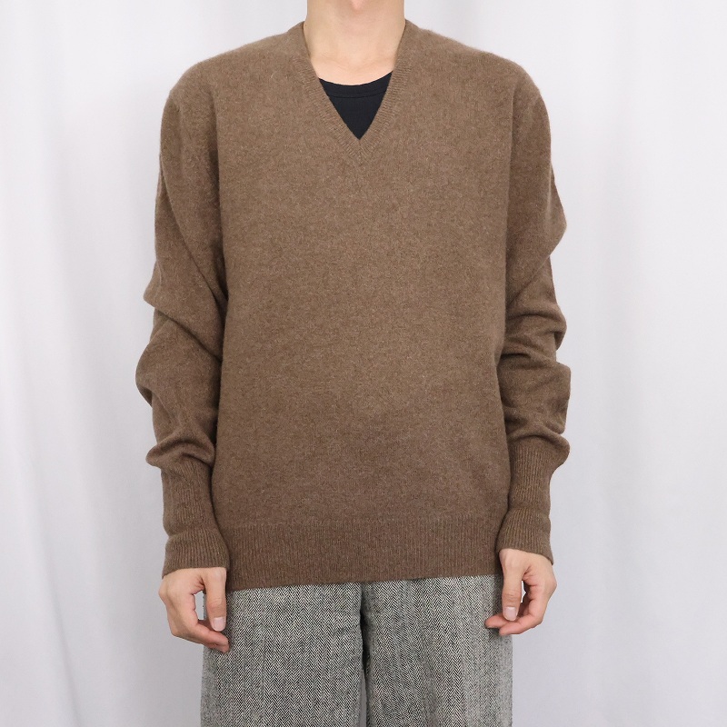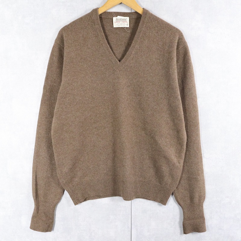 80's Minklama LORD JEFF Vネック ウールニットセーター L [164705]