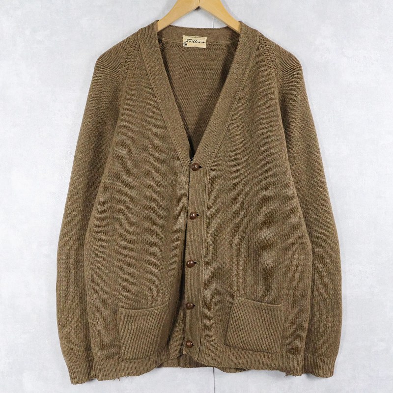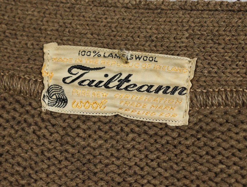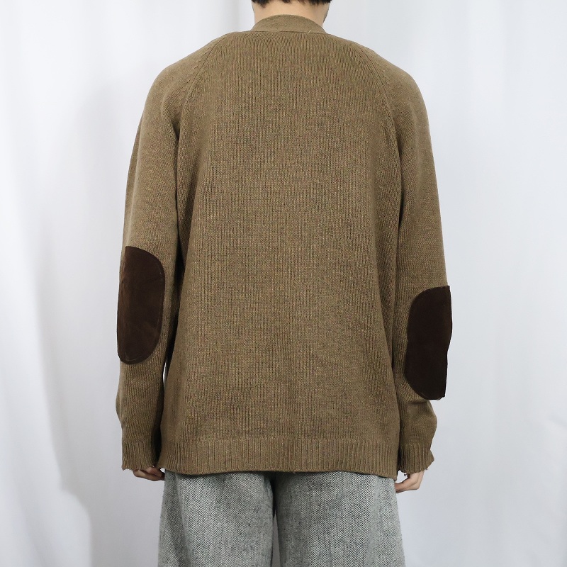 70〜80's Tailteann IRELAND製 エルボーパッチ付き ラムウールニットカーディガン [164725]