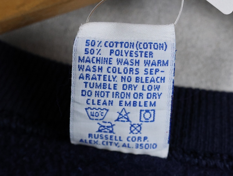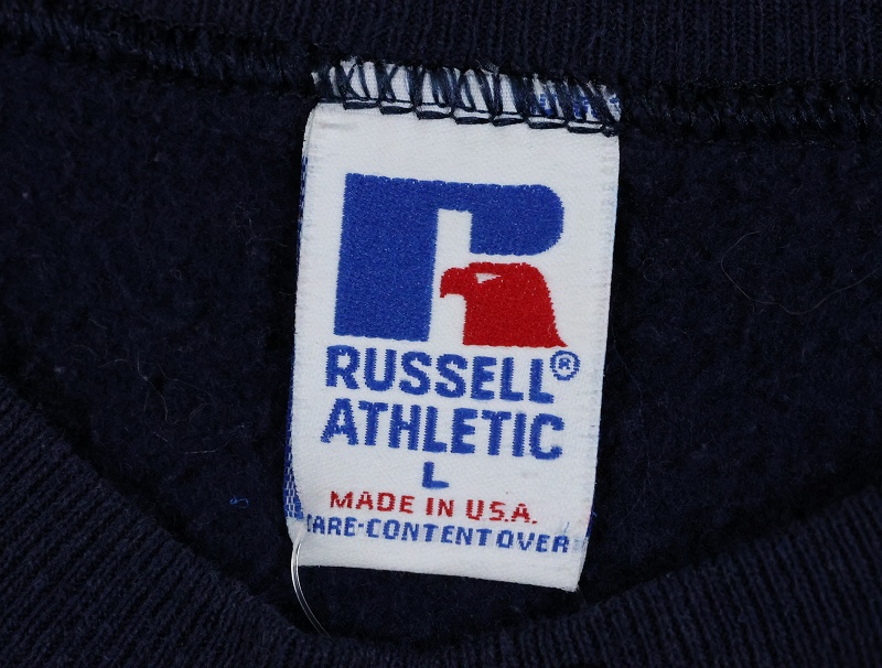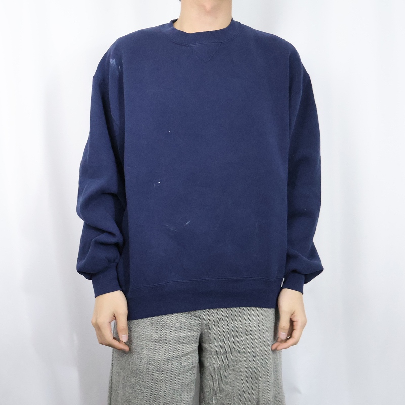 90's RUSSELL ATHLETIC USA製 前V 無地スウェット NAVY L [164731]